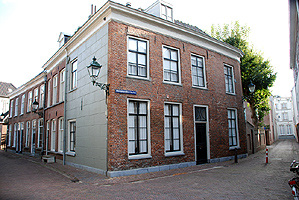 Zijgevels:De linker zijgevel is gepleisterd en heeft een (vernieuwde) hardstenen plint. In het pleisterwerk zijn schijnvoegen aangebracht. Links in de gevel is op de begane grond een venster met 6-ruits schuifraam en (vernieuwde) hardstenen lekdorpel zichtbaar. Dit kozijn zal oorspronkelijk een luik hebben gehad, gezien de duimen links in het kozijn. Recht hierboven op de verdieping een venster met T-schuifraam en een hardstenen lekdorpel. Deze zijgevel wordt afgesloten door een eenvoudige kroonlijst die om de hoek doorloopt over de voorgevel. Links gaat deze gevelafsluiting door over de voorgevel van het buurpand.De rechter zijgevel is eveneens gepleisterd. Er zijn geen gevelopeningen in deze gevel. Ter plaatse van de verdiepingsvloeren zijn staafankers zichtbaar. Deze zijgevel wordt afgesloten door een daklijst. Achtergevel:De achtergevel is niet goed zichtbaar vanuit de openbare ruimte. Deze gevel gaat over in de uitbouw van het pand en is geheel gepleisterd. De openingen in de begane grond worden door een muur aan het zicht onttrokken. Op de verdieping zijn twee gevelopeningen. Ter hoogte van de verdiepingsvloeren zijn staafankers. De achtergevel wordt afgesloten door een daklijst.Ruimtelijke indeling:Op tekeningen uit 1981 is de indeling van het pand als volgt weergegeven: Er is in de plattegrond over alle lagen een duidelijke scheiding zichtbaar tussen het hoofdgedeelte en het rechter zijgedeelte. De ingang ligt in het hoofdgedeelte en komt uit in een hal. In deze hal, tegen de zijmuur met het rechter gedeelte, ligt de trap naar de verdieping. Er zijn twee stookplaatsen: een ligt tegen de linker zijmuur, de ander tegen de rechterzijmuur. De trap van de verdieping naar de zolder is ook in het hoofdgedeelte gesitueerd en ligt tegen de achtergevel. De begane grond vloer en de zoldervloer van het rechter gedeelte liggen iets hoger dan de vloeren van het hoofdgedeelte.Constructies:In een documentatierapport uit 1976 is het volgende opgenomen met betrekking tot de constructie: Het keldertje heeft een enkelvoudige balklaag. De kap, die over beide delen doorloopt, heeft nog een dekbalkjuk met schaarspant en gording. De rest van de kap is vernieuwd.Op tekeningen uit 1981 is te zien dat de balklagen in het pand enkelvoudig zijn. In 2000 is er in het pand een oude moerbalk aangetroffen in de hoog gesitueerde | 3 |