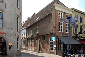 Het Keershuis. Laatgotisch huis. Zijgevel aan de St. Janstraat met overgekraagde verdieping en achtergevel met oorspronkelijk zadeldakvormig afgedekte trappen. Voorgevel begin 19e eeuw met kroonlijst op tandlijst. Op eerste verdieping schuiframen met klos onder wisseldorpel (oorspronkelijk driemaal twee ruiten in plaats van de huidige kleine roedenverdeling. |