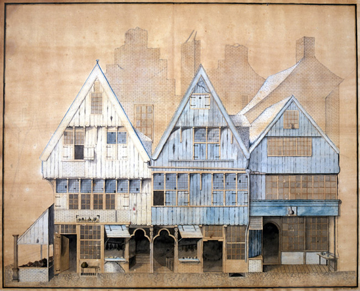 Dit kleine pandje was, evenals het linker buurpand waarmee het op kelderniveau in verbinding stond, aan de achterzijde tegen het Vleeshuis gebouwd. Aan deze zijde van het Vleeshuis was een ingang, die waarschijnlijk in Markt 4 gesitueerd was. Op de tekening van Van Someren uit 1835 (KUB Tilburg) staat een ingangspartij weergegeven met twee driepasbogen en gebeeldhouwde stijlen. Het pandje behoorde in het begin van de 16de eeuw aan Hendrik van Zutphen. Volgens het cijnsboek van 1520 moet | 276 |