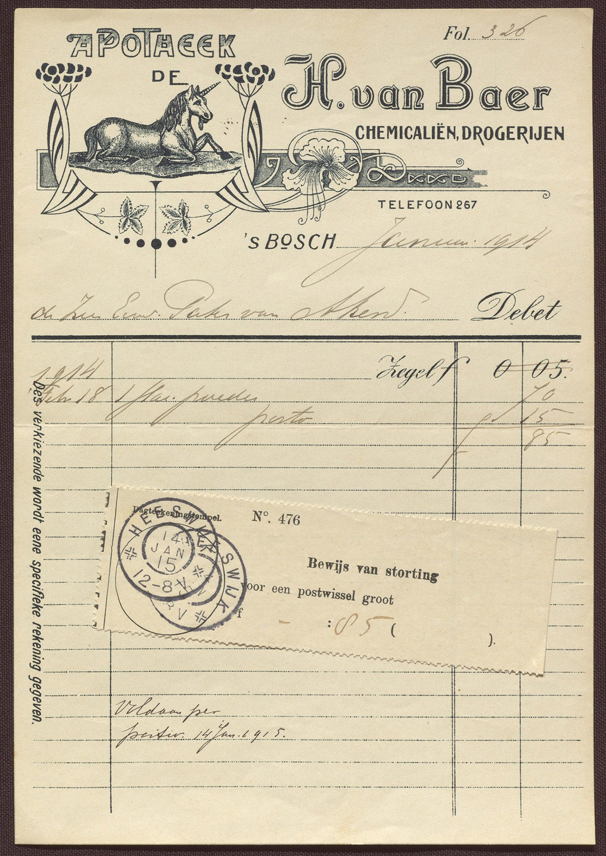 | 1908 | H.F.W.M. Baer (apotheek) |