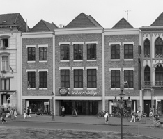 Een moderne, grote winkel aan de Markt. Aangezien de Markt de oudst bebouwde plek van de stad is, zullen we er ongetwijfeld een rijke geschiedenis aantreffen. Vandaar enkele grepen uit de geschiedenis van de panden achter de voorgevel van: Markt 43-49. De moderne voorgevel van het C&A lijkt uit drie delen te bestaan: het is de herinnering aan de drie afzonderlijke panden die eens op deze plek hebben gestaan. Het middelste pand heette De Gulden Kop. Dat was in 1409 al de naam van een herberg op die plaats. En een herberg of logement is het eigenlijk altijd gebleven, tot vijfentwintig jaar geleden. Een logement dat vele illustere gasten heeft gekend. Op 8 april 1540 bijvoorbeeld logeerden er de hertog van Brunswijk en de hertog van Kleef. Zij hadden een groot gezelschap bij zich en ondermeer 50 paarden. De Gulden KopNa de Beeldenstorm in 1566 kreeg de stad een vreemd garnizoen. De eerste gouverneur van de stad, Antoni van Bombergen, vond eveneens onderdak in De Gulden Kop. Hij plaatste vóór het logement ondermeer twee stukken geschut en een wachthuisje: het moest voor hem echt het militaire centrum van de stad worden.In de negentiende eeuw stond het pand bekend als het Brabants Koffijhuis. Zo heette het in 1890 nog, toen Piet Mulders (Bosschenaren noemden hem steevast Mulder, zonder de 's') er samen met zijn echtgenote een hotel begon: Hotel Noord-Brabant. Zestien dodenRechts van De Gulden Kop stond het Hooghuis van Vladeracken. Het was een aanzienlijke familie, die ondermeer grond bezat in Nuland an Geffen. Hoewel aanzienlijk, was in 1512 de echtgenote van de eigenaar verdacht van verraad bij een Gelderse aanval. Landvoogdes Margaretha 'deed derhalve dat vrouwmensch gevangen nemen', maar later werd zij wegens gebrek aan bewijs vrijgelaten. In 1626 'op een schoon licht dag' is het pand geheel ingestort. De toenmalige eigenaar, Boudewijn Peters, en vijftien anderen vonden er de dood in de puinhopen. De zonen van overleden eigenaar lieten het pand herbouwen.Maar in die tijd sloten alle panden niet precies aan elkaar. Via een klein, nauw gangetje kon men achter de riante panden aan de Markt komen bij enkele armoedige huisjes. Het Muizenhol was de toepasselijke naam voor deze 'krotjes'. Links van De Gulden Kop was eveneens een logement gevestigd. In 1514 heette het Het Hert. In dat jaar kochten de wasmeesters van het Schuttesgilde De Oude Schuts dit pand: acht jaar leter verkochten zij het weer. Het bleef logement tot het eind van de achttiende eeuw. In 1799 kocht F.A. Mosmans, de stamvader van de latere bekende Bossche familie, dit pand. In 1817 kwam het in handen van Wouterus van de Pas. Onder die familienaam was er in het begin van de twintigste eeuw nog een tabakszaak in gevestigd. Piet MuldersHet ging goed met Piet Mulders in zijn Hotel Noord-Brabant. Hij kocht er de panden links en rechts bij en breidde zijn hotel uit. De advertenties in de dagbladen getuigden van deze vooruitgang in het hotelwezen. Hij had snel telefoon: nummer 171. Al in de 20-er jaren hadden de kamers 'warm en koud stroomend water', waren er badkamers en een lift. Een eigen 'autogarage' bezat het hotel eveneens, net als trouwens een 'Groot terras met uitzicht op het marktplein'.In 1969 maakte de familie Mulders bekend dat het hotel gesloten zou gaan worden en dat na sloop C&A er een nieuwbouw neer zou zetten. Er volgde toen zelfs een ludieke aktie: een bezetting van het terras, om behoud van het pand te bepleiten. Tevergeefs: alles werd gesloopt om plaats te maken voor het kledingwarenhuis. Een aantal personen vond dat het nieuwe gebouw geen aanwinst voor de stad was, met z'n blote-konten-gevel. Bij de officiële opening, twintig jaar geleden, trokken een aantal aktievoerders dan ook demonstratief de broek uit. |