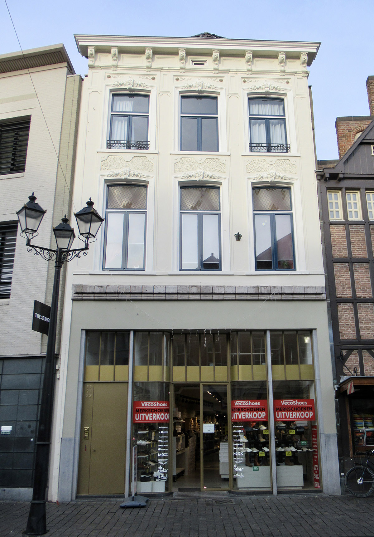 tweeruits bovenlicht. De gevel bevat op zolderniveau een klein venster met draairaam. De gevel is voorzien van een aantal ankers.Interieur:Uit gegevens van de gemeente ‘s-Hertogenbosch, afdeling BAM valt op te maken dat het voorhuis en het achterhuis zijn onderkelderd. Deze kelders zijn voorzien van een tongewelf. Op bouwtekeningen uit 1986 is een samengestelde balklaag ter plaatse van de eerste verdiepingsvloer te zien. De balklaag zou bij deze verbouwing zijn behouden. Op zolder bevindt zich een aantal geknikte spantbenen met dekbalk.Redengevende omschrijvingHet pand heeft monumentale waarde vanwege de gevels, de bouwmassa, de situering en als ensemble. Gegevens die zijn aangeleverd door de gemeente ‘s-Hertogenbosch, afdeling BAM, vermelden dat in het pand waardevolle bouw- en kunsthistorische elementen aanwezig zijn. Het pand heeft historische betekenis en is representatief voor de ontwikkeling van de stad. | 2 |