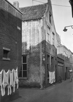 Laat 17e eeuws pand met verdieping onder met Hollandse pannen gedekt zadeldak tegen ingezwenkte halsgevel (voor) en met schild (achter); zijgevels in de 19e eeuw iets verhoogd. Deuren met bovenlicht en 6-ruits schuiframen in het voorste gedeelte; het achterste gedeelte (Walpoort 1 a en 3) is in 1924 vrij sterk vernieuwd en van nieuwe vensters en deuren voorzien. |