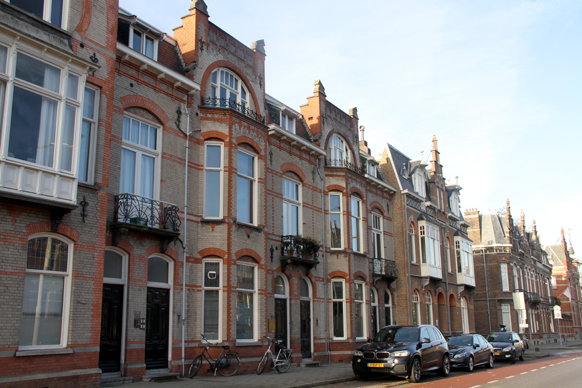 De herenhuizen, thans nog steeds als woonhuis of als woonhuis annex dokterspraktijk in gebruik, werden gebouwd in 1903 door architect M. Heestermans. De toegepaste bouwstijl vertoont veel invloeden van de Art Nouveau. Voorliggend object is een vroeg voorbeeld van kalkzandsteenbouw, een kunststeen die enkel in de begintijd veel in buitengevels werd toegepast. De eerste Nederlandse fabriek voor de productie van kalkzandsteen verrees in 1898 in Oldenzaal. De achtergevels zijn op onderdelen gewijzigd en versoberd. De interieurs zijn ten dele gemoderniseerd.