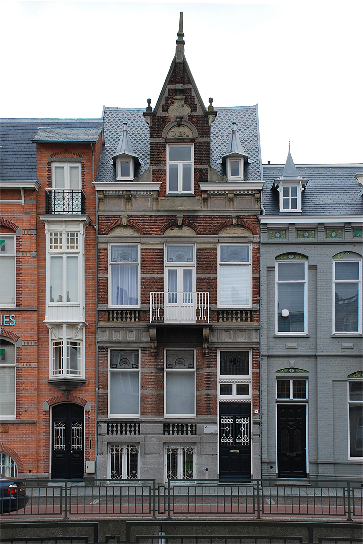 InleidingIn de wijk Het Zand gelegen voormalig herenhuis met achtererf. Het betreft een tussenwoning, gebouwd in 1900 in Neo-Renaissance stijl. De wijk Het Zand is vanaf circa 1890 aangelegd in een gebied tussen de oude binnenstad en het spoor en ontleent zijn naam aan de noodzakelijke ophoging van het terrein dat voor militaire inundaties was afgegraven. De woningen werden gerealiseerd door particulier initiatief en voornamelijk betrokken door welgestelde Bosschenaren. Vanaf de Stationsweg, de primaire hoofdas van Het Zand, neemt de rijkdom in ornamentiek van de bebouwing in noordelijke en zuidelijke richting af, hetgeen correspondeert met de oorspronkelijke grondprijzen en de sociale status van de voormalige eigenaren en bewoners.In 1919 heeft architect A. Nijsten de bel-étage aan de achterzijde uitgebreid door de serre en oude kelder te vergroten en een nieuw eenlaags kantoorlokaal onder plat aan te bouwen. Het interieur van het thans deels als kantoor gebruikte pand is deels gemoderniseerd. OmschrijvingHet bakstenen pand beslaat een rechthoekige plattegrond en is opgebouwd uit een souterrain, bel-etage, eerste verdieping en een kapverdieping onder een samengesteld dak. Aan de Oranje Nassaulaan een zadeldak, evenwijdig aan de straat, met aan de zijkanten deels windveren. In het voordakschild, gedekt met schubleien in Maasdekking, bevinden zich twee dakkapellen onder met zink gedekte schilddakjes met ingesnoerde spitsen. Het heeft een lagere dakvoet dan het met kruispannen gedekte achterschild. Aan de achterzijde een plat dak. De voorgevel van het in kruisverband gemetselde pand is drie traveeën breed en op de entree na symmetrisch van opzet. Bekroning met een Vlaamse gevel waarachter een aankappend, met schubleien gedekt zadeldak met gelijke noklijn als het hoofddak. Hardstenen afdeklaag met dito bekroningen op de top en op de door kraagstenen ondersteunde schouderstukken. Klauwstukken aan weerszijden. Sterk verweerde gevelcartouche in het boogveld vermeldt '1900'. De gevel wordt horizontaal geleed door de hardstenen bossage van het souterrain en entablementen in hard- en zandsteen ter afsluiting van de bel-etage en de verdieping. Hoofdgestel van de bel-etage bestaande uit eenvoudige architraaf, casementen-fries en afsluitende lijst; op de verdieping bestaande uit architraaf, casementen-fries met voluutvormige gootconsoles ter ondersteuning van de als een kroonlijst vormgegeven houten goot met bloktandlijst. Verdere horizontale geledingen en verlevendigingen door gecementeerde speklagen en doorgetrokken lekdorpels en lateien. Gevelopeningen met rechtgesloten kozijnen waarin schuif- en stolpvensters, deels met bovenlichten voorzien van zeer gedetailleerd glas-in-lood. Diverse vensters met een borstwering van hardstenen en zandstenen balusters, op de verdieping en in de topgevel onder bogen met verweerde cartouches in de boogvelden. Souterrainvensters met smeedijzeren, getordeerde diefijzers. Afgebiljoend entreekozijn waarin betraliede en beglaasde enkelvoudige paneeldeur met driedelig bovenlicht voorzien van glas-in-lood. Centraal op de verdieping een balkon op consoles. Achtergevels soberder gedetailleerd. Bekroning met een brede, afgeknotte topgevel. Vensters deels versoberd, met lekdorpels en onder strekken. Beglaasde serredeuren met panelen en gekleurd glas-in-lood.De opzet van de plattegronden is herkenbaar bewaard gebleven. Trappenhuis in de rechter travee met op de bel-etage een aangrenzende (voormalige) salon-en-suite met achtergelegen serre en op de eerste verdieping een aangrenzende achter- en voorkamer met balkon. Van de interieurs zijn onder meer van belang: vestibule met originele vloer voorzien van gepolijste polychrome cementtegels, hardstenen trap en lambrisering; trappenhuis met sierlijk gesneden houten trappaal en balusters; diverse vertrekken met plafonds voorzien van stucwerk en stuclijsten, marmeren schouwen, paneeldeuren met geprofileerde deurlijsten, schuifdeuren met panelen en glas-in-lood. WaarderingHet voormalige herenhuis is van algemeen belang. Het object bezit cultuurhistorische waarden als voorbeeld van een woning voor de meer welgestelden. De sociale status is nauw verbonden met de situering in stedenbouwkundige context. Daarnaast omdat het object als onderdeel van de eerste stadsuitbreiding buiten de wallen een belangrijke fase vertegenwoordigt in de stedenbouwkundige ontwikkeling van Den Bosch. Het object heeft architectuurhistorische waarde vanwege de esthetische kwaliteiten van het architectonisch ontwerp, de verzorgde ornamentiek en afwisselende detaillering en materiaalgebruik in de gevels en delen van het interieur.Het object heeft ensemblewaarden als onderdeel van de historische langs een van de hoofdwegen van de wijk Het Zand. Het object is van belang wegens de architectonische gaafheid van de hoofdvorm en de bewaard gebleven elementen uit het interieur en draagt bij tot de visuele en structurele gaafheid van de wijk Het Zand. |