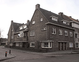 de met glasblokken vormgegeven bovenlichten. Op de vensters rechts van de deuren bevindt zich een breed, vermoedelijk nog oorspronkelijk venster, bestaande uit een groot glasvlak met een draaiend deel links daarvan. Uiterst links, op de hoek met de gevel aan de Koedijkstraat, is een samengesteld venster dat om de hoek is voortgezet en eveneens geplaatst is onder een uitstekende betonnen lijst. Op de eerste verdieping bevinden zich vier identieke vensters, gevormd door dubbele draairamen. De gevel eindigt met een ver overkragende bakgoot op klossen. Een soortgelijk vormgegeven bakgoot is zichtbaar bij de twee dakkapellen met plat dak in het bovenliggende dakvlak, voorzien van een twee- en drieledig venster met bewegende ramen. Gevel Koedijkstraat:De woningen aan de Koedijkstraat bezitten een ondiepe voortuin, die met een laag opgemetselde tuinmuur van de openbare ruimte is afgescheiden. De vormgeving en detaillering van het muurwerk en de vensters sluit aan op de gevel aan de Willem van Nassaulaan. De gevel bestaat visueel uit drie delen: de kopgevels van de twee bouwdelen aan de Willem van Nassaulaan en de Koedijkstraat vormen de buitenste twee geveldelen.Hiertussen bevindt zich een lager geveldeel dat de begane grond en eerste verdieping omvat en dat hoort bij het dwarsgeplaatste bouwdeel met zadeldak dat de twee hiervoor genoemde bouwdelen met elkaar verbindt. Alle gevels liggen in hetzelfde vlak. Karakteristiek voor het totaalbeeld van de gevel is de horizontale gelaagdheid met uitstekende betonnen lijsten en de uitkragende bakgoten en de ritmiek van kleinere en grotere vensters. Beide kopgevels zijn twee vensterassen breed. Het gevelvlak van de rechter kopgevel wordt onderbroken door een uitstekende betonnen lijst, geplaatst boven een vensteropening. Zowel het venster, bestaande uit een breed vast raamdeel en een smal draaiend zijraam, als de lijst zijn om de hoek voortgezet. Op de linkervensteras bevinden zich zowel op de begane grond als op de verdieping twee vensters, die qua vormgeving identiek zijn met het reeds hierboven beschreven zogenaamde brede venster. Voorts bevindt zich op de eerste verdieping een liggend venster met een vast en een kleppend raamdeel. In de top van de tuitgevel is een enkel en een dubbel klein venster aangebracht. Beide kopgevels zijn afgewerkt met een lijst van uitgemetseld siermetselwerk die alleen in de rechter topgevel onderlangs de schoorsteen in de top is doorgemetseld. Het middelste geveldeel wordt gedomineerd door de uitstekende betonnen lijst die de begane grond visueel van de eerste verdieping scheidt. Op de begane grond bevinden zich vier gevelopeningen, waarvan er twee voorzien zijn van een voordeur. Ook hier bestaan de bovenlichten, die zich boven de betonlijst zijn geplaatst, uit glazen bouwblokken. Rechts bevinden zich twee brede vensters. Het muurwerk ter hoogte van de eerste verdieping is aan de rechterzijde voorzien van een uitgebouwde erker en een balkon, die is geplaatst op de betonnenlijst. De erker bestaat uit een breed ongedeeld raamvlak met een smal, draaiend zijraam aan de linkerzijde en twee smalle zijstukken. Het metselwerk van de erker is naar rechts als gesloten balustrade van een ondiep balkon voortgezet. De deur naar het | 2 |