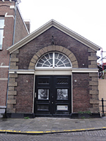 Voormalig koetshuis (XIX B); aan de Dieze gelegen, in schoon metselwerk opgetrokken pand zonder verdieping onder met blauwe Hollandse pannen gedekt zadeldak met schild (achter). De voorgevel met hardstenen plint heeft in het midden rechtgesloten inrijdeuren, waarvan de bovendorpel zich voortzet in een (houten) cordonlijst, met daarboven halfrond bovenlicht voorzien van waaier-tracering en in gele baksteen gemetselde rondboog; getand gemetselde hoeklisenen van gele baksteen; zware geprofileerde lijst ter afdekking van geveltop. In zijgevel twee 6-ruits schuiframen. |