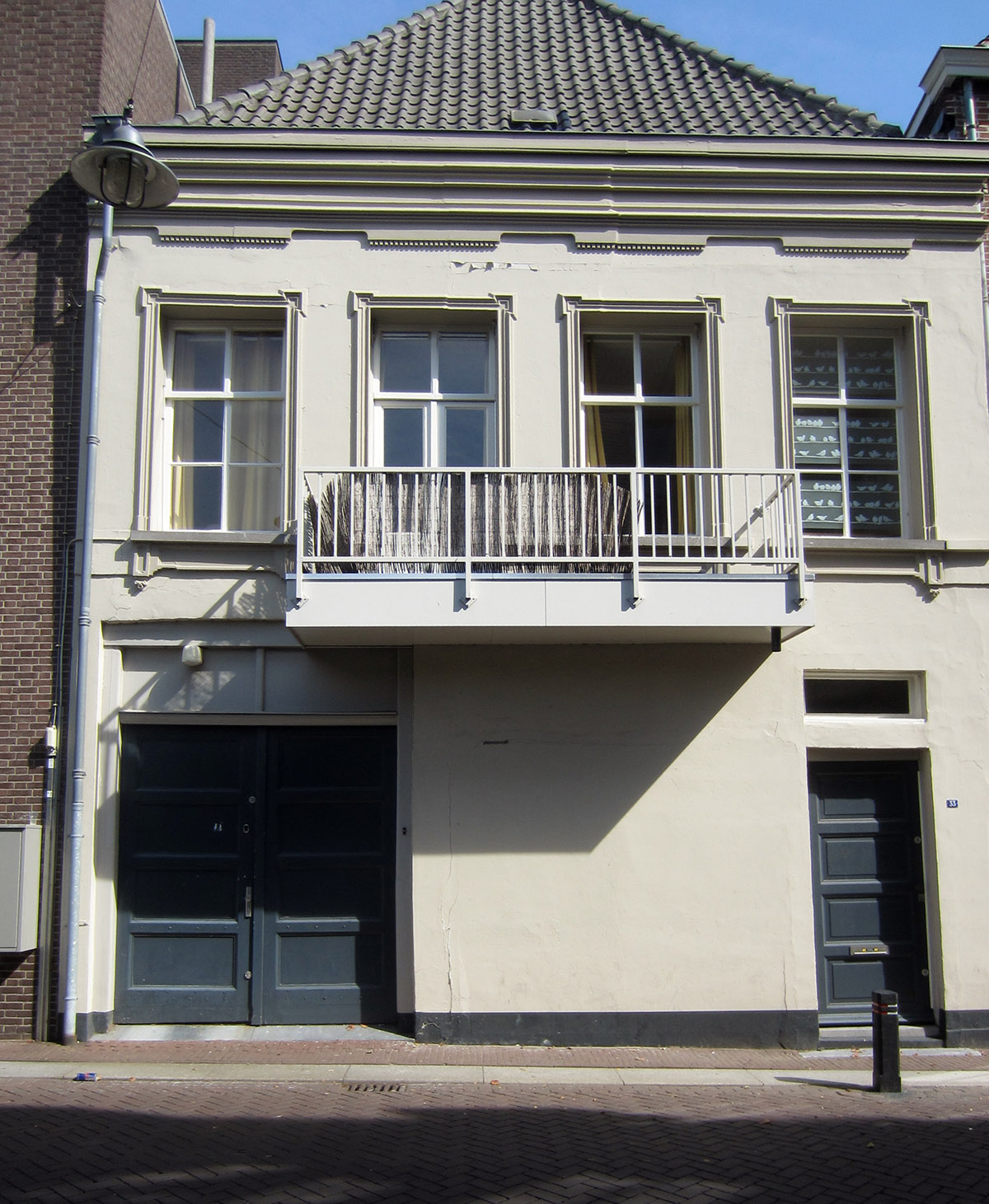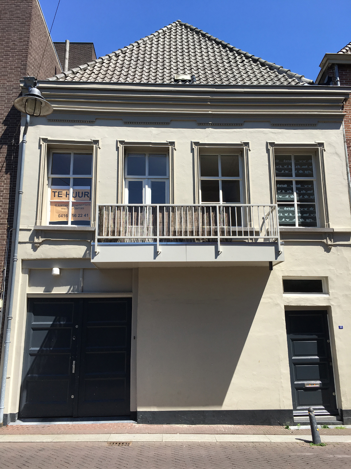 Context(Bouw)historie:Het pand Dode Nieuwstraat 33 bevat op de begane grond een winkel met magazijn en daarboven een woning. Het pand dateert waarschijnlijk uit de 18de eeuw, waarbij gebruik is gemaakt van een laat-middeleeuwse muur als rechter zijmuur. Het pand kreeg rond 1865 een nieuwe voorgevel. In de tweede helft van de 19de eeuw en de vroege 20ste eeuw werd het achterterrein verder volgebouwd met verschillende bouwdelen.Volgens een bouwtekening uit 1919 bevonden zich destijds in het volume aan de Dode Nieuwstraat op de begane grond onder andere kegelbanen, die in 1941 werden verbouwd tot magazijn. Op de verdieping bevond zich toen reeds woonruimte. In 1934 vestigde zich in de achterliggende panden Pensmarkt 30-34 op de begane grond een schoenwinkel van Van Haren. In deze periode breidde het concern uit Waalwijk, dat in 1929 was opgericht snel uit. Later breidde de winkel verder uit naar achteren, naar Dode Nieuwstraat 33. De percelen werden samengevoegd, en tussenmuren werden op de begane grond doorbroken teneinde een grote winkelruimte te creëren. Thans is Van Haren nog altijd in het pand gevestigd. Ligging:Het pand is gelegen aan de oostzijde van de Dode Nieuwstraat in een gesloten gevelwand. Het bouwblok tussen de Dode Nieuwstraat en de Pensmarkt ligt op het hoogste punt van de oude stad, zeker na enige ophogingen die in de 13de eeuw plaatsvonden. In de 13de eeuw zijn in de naaste omgeving aan de Pensmarkt de eerste grote stenen, burgerlijke huizen van de stad gebouwd. Op het achterterrein van een aantal van de grote percelen in de zuidelijke helft van het bouwblok werd in de 13de eeuw het klooster van de Minderbroeders (Franciscanen) gevestigd. Dit klooster werd onder andere ontsloten door de Minderbroedersstraat. Ter plekke van Dode Nieuwstraat 33 lag destijds ook een deel van de abdij. Na de confiscatie van het klooster in de 16de eeuw is de grond uitgegeven aan particulieren.Het perceel van Dode Nieuwstraat 33 (en het erachter gelegen Pensmarkt 30-34, dat afzonderlijk voor de gemeentelijke monumentenlijst is beschreven) heeft een onregelmatige langwerpige vorm die zich uitstrekt over de hele diepte van het bouwblok. In 1832 waren Dode Nieuwstraat 33 en Pensmarkt 30-34 nog aparte percelen. Naderhand zijn deze dus samengevoegd. BeschrijvingAlgemeen (hoofdvorm, kap):Het pand Dode Nieuwstraat 33 heeft een langwerpig rechthoekige plattegrond met een achtergevel die iets schuin staat ten opzichte van de voorgevel en zijmuren. Het gebouw bevat een begane grond, verdieping en zolder met borstwering, onder een zadeldak met voor- en achterschild dat is gedekt met gesmoorde Hollandse pannen.Hierachter bevinden zich verschillende een-en tweelaags bouwvolumes op het binnenterrein. Deze dateren in kern waarschijnlijk grotendeels uit de tweede helft van de19de eeuw, maar zijn in vorm gewijzigd doordat kappen ten dele zijn vervangen door platte daken. Voorgevel:De voorgevel is een gepleisterde lijstgevel van omstreeks 1865. Op de begane grond bevindt zich links een brede gevelopening met een kozijn met kraalprofiel en een dubbele houten paneeldeur met dubbel bovenlicht (geblindeerd). Rechts daarvan bevindt zich een blinde zone met zichtbare sporen van een ingang in het midden van de gevel. Uiterst rechts is er een ingang met een kozijn met kwarthol profiel en recente paneeldeur. Opmerkelijk is dat zich zo’n 20 cm. hierboven een klein bovenlicht bevindt.Op de verdieping bevinden zich vier gevelopeningen: drie vensters en links van het midden een doorgang naar het balkon. Dit balkon is een recente vervanging van een vroeg 20ste-eeuws exemplaar, dat zich voor de middelste twee gevelopeningen uitstrekt. De vensters hebben hardstenen lekdorpels aansluitend aan een doorlopende gepleisterde cordonlijst. Onder deze lijst bevindt zich een licht vooruitstekende gepleisterde zone met verdiepte panelen onder de vensters met aan weerszijden console-achtige elementen met siermotieven die de lekdorpels lijken te steunen. De gevelopeningen hebben gepleisterde, geprofileerde omlijstingen met uitgezette | 2 |