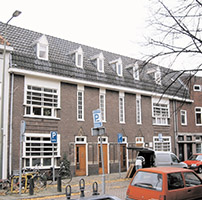 BeschrijvingAlgemeen:Bouwblok van vier beneden- en bovenwoningen, gebouwd in sobere Amsterdamse Schoolstijl. Het bestaat uit drie niveaus, namelijk een begane grond, een eerste verdieping en een zolderverdieping. Het bouwblok is voorzien van een mansardedak, dat doorloopt over de belendende bebouwing aan de rechterzijde (Van Noremborghstraat 91-93-95-97) en is gedekt met gesmoorde verbeterde Hollandse pannen. Voor een eventuele onderkeldering zijn geen aanwijzingen.Voorgevel:De voorgevel kent een spiegelsymmetrische opzet van tweemaal drie vensterassen. Het opgaand muurwerk is opgetrokken in kruisverband en staat op een uitgemetseld trasraam in kruisverband, vervaardigd van een iets donkerder steen. Karakteristiek voor de gevels als totaalbeeld is de afwisseling tussen de horizontale geleding op de buitenste vensterassen en de verticale opbouw van de vier middelste vensterassen. In het midden bevinden zich vier deuren op een rij, die toegang geven tot respectievelijk de benedenen de bovenwoningen. Alle deuren zijn nog de oorspronkelijke en hebben een strakke, geometrische vormgeving. Boven de deur bevindt zich een iets smaller, met glas-in-lood gevuld bovenlicht met verticale roeden. De deuropening is geaccentueerd met twee gemetselde pilasters die vanaf de uitspringende plint zijn opgemetseld tot de bovenzijde van het deurkozijn. De onderste en bovenste baksteenlagen zijn gecementeerd, waardoor het lijkt alsof de pilasters aan de onder- en bovenzijde zijn voorzien van een blok natuursteen. Het muurwerk boven het bovenlicht is gedecoreerd met een driehoek van siermetselwerk. De verticale, rijzige opbouw van deze vier vensterassen wordt voortgezet op de verdieping met vier smalle staande vensters, zogenaamde laddervensters (draairamen). Aan de bovenzijde sluiten deze vensters met een houten lijst die de breedte van de vensteropening heeft, aan op de uitstekende bakgoot. In sterk contrast hiermee zijn de brede, samengestelde vensters op de buitenste twee vensterassen. Het venster op de begane grond, geplaatst op het uitgemetselde trasraam, is identiek aan het venster op de verdieping. Het onderste deel van de venster wordt gevormd door een driekantige erker die niet buiten het gevelvlak steekt maar is opgenomen in een gevelopening die zich met overhoeks gemetselde neggen verdiept. Deze erker heeft een breed draairaam in het middelste deel en twee vaste, smalle ramen in de zijstukken. | 1 |