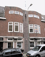 BeschrijvingAlgemeen:Symmetrisch bouwblok met beneden- en bovenwoningen in sobere Amsterdamse Schooltrant, gecombineerd met elementen ontleend aan de strakkere Art Deco-stijl. De woningen tellen elk drie niveaus, namelijk een begane grond, een eerste en een tweede respectievelijk zolderverdieping die deels van een mansarde kap, deels van een zadeldak is voorzien. Het mansardedak is gedekt met gesmoorde Tuiles du Nord pannen; het zadeldak is voorzien van gesmoorde verbeterde Hollandse pannen.Voorgevel:De gevels zijn spiegelsymmetrisch van opzet en kenmerken zich door een zeer krachtige vormgeving. Het onderste deel van de gevel van nr. 91-93 kent een sterk horizontale geleding: het opgaand muurwerk van de begane grond en de eerste verdieping is van elkaar gescheiden door een over de volle breedte doorlopende latei van granitobeton. Hieronder is een tweede iets minder hoge overstekende latei die de bovenlichten van de vensters en deuren op de begane grond scheidt. De tweedeling tussen begane grond en de verdiepingen wordt nog eens versterkt door het verschil in metselwerk: de begane grond is gemetseld met een donkere, paarse baksteen in staand verband met verdiepte voegen. Het bovenliggend muurwerk van beide gevels is uitgevoerd in oranje-rode bakstenen, eveneens in staand verband. De middenas is benadrukt door een smalle strook metselwerk, vervaardigd van dezelfde donkere stenen die voor de begane grond zijn gebruikt. De begane grond is drie vensterassen breed. Bij nr. 91 en 93 zijn zowel de voordeur als de kozijnen nog origineel. De twee vensters staan op een uitspringende, betonnen dorpel en zijn overhoeks in de verdiepte gevelopening geplaatst. Bij nr. 95-97 is de gevel ter hoogte van de begane grond geheel vernieuwd; dit als een zorgvuldige kopie van de rechtergevel. Het muurwerk ter hoogte van de eerste en tweede dan wel zolderverdieping is opgebouwd uit twee delen. Zeer karakteristiek in het gevelbeeld is de gebogen vorm van de uitgemetselde erker aan weerszijden van de middenas ter hoogte van de eerste en tweede verdieping. Tussen twee doorgemetselde rollagen bevinden zich drie vensters met bovenlicht, slechts van elkaar gescheiden door een smalle muurdam. Voor nr. 91-93 geldt dat het kozijnhout nog oorspronkelijk is, terwijl het raamhout van de twee buitenste draaiende en het middelste vaste raam is vernieuwd. Op de tweede verdieping bevindt zich een drietal liggende vensters. Ook hiervoor geldt dat de kozijnen nog origineel zijn, maar dat hierin nieuwe | 1 |