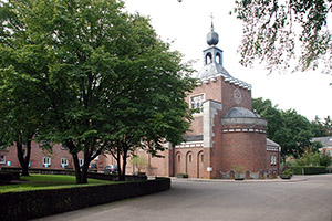 bewaard, evenals de bekleding met travertin van de noordwand van de traphal. De in schoon metselwerk uitgevoerde lambriseringen van de gangen zijn (vrijwel) volledig in 1989 tot stand gekomen. De kapel heeft een vrij sober interieur met in schoon metselwerk in gele baksteen uitgevoerde wanden en met verticale houten schroten afgetimmerde dakvlakken. De twee houten dakspanten met een middenstijl met flankerende schoren liggen hier in het zicht. Met uitzondering van de apsis is de vloer met tapijt bekleed. De apsis heeft een iets verhoogde vloer van gepolijst travertin. De gebogen noordwand is ruw gepleisterd, evenals het halfronde koepeldak | 26 |