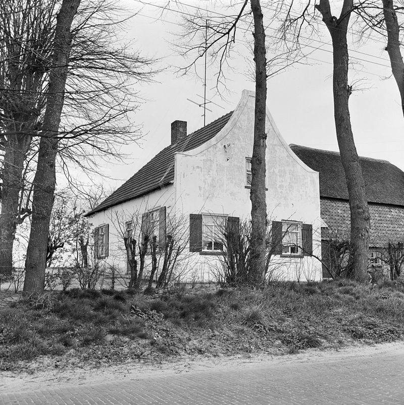 Redengevende omschrijvingKortgevelboerderij uit het eerste kwart van de 19e eeuw van één bouwlaag met een afgewolfd zadeldak en mogelijk oudere gebintconstructie.De boerderij is oost-west georiënteerd, evenwijdig aan de weg en omvat één bouwlaag met een afgewolfd zadeldak. Vermoedelijk dateert het metselwerk uit het eerste kwart van de 19de eeuw. De ankerbalk gebintconstructie is mogelijk ouder. Het dwarse woonhuis aan de westzijde geeft de boerderij een T-vormige plattegrond en heeft een zadeldak met aan één zijde een wolfseinde en aan de straatzijde een gepleisterde klokgevel. De gevels zijn met een handvormsteen gemetseld in kruisverband. Daarbij zijn in de oostelijke kopgevel vlechtingen toegepast, waaruit kan worden opgemaakt dat de noordgevel oorspronkelijk lager is geweest en de boerderij ook breder. In de kopgevel is de oorspronkelijke getoogde doorgang voor de schuur dichtgemetseld. Het hooiluik op zolderniveau is secundair in de gevel aangebracht. In de zuidgevel aan de straat bevinden zich zes-ruits stalramen. Het dak is vanaf de wolfseinden tot de nok gedekt met riet, daaronder met gesmoorde oud-Hollandse pannen. Het wolfseind bij het woonhuis is door een "zakgoot" met het dak van het woonhuis verbonden. Tegen de zuid-oosthoek van het gebouw staat het bovenste deel van een hardstenen stoeppaal in renaissancestijl waarop een wapen is gebeeldhouwd en dookgaten verwijzen naar verdwenen ijzeren stangen. De boerderij is van cultuurhistorisch belang vanwege zijn in samenhang met de woning voor de streek typologische zeldzaamheid, oorspronkelijk karakter en gaaf aanwezige constructie, straatbeeldbepalend. | 1 |