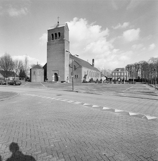 Redengevende omschrijvingDrie-beukige R.K. Kerk St. Joannes' Onthoofding, gebouwd in 1951 naar een ontwerp van J. Magis, in de stijl van de Bossche School met zware toren en achthoekige doopkapel.De oost-west georiënteerde kerk is vrij gesitueerd aan een groot plein. Het gebouw is symmetrisch van opzet en omvat drie beuken gedekt door zadeldaken, die bij de zijbeuken tussen topgevels zijn geplaatst Aan de westzijde bevindt zich de zware toren die van jongere datum is.Tussen de hoge middenbeuk en de lager zuidbeuk bevindt zich aan de oostzijde de oorspronkelijke klokkentoren. De gevels van de kerk en de zware toren zijn gemetseld in Noors verband, waarin middels een rollaag een plint wordt gesuggereerd. In de toren aan de westzijde, die van gelijke breedte is als de middenbeuk, is de hoofdingang opgenomen. Deze is bereikbaar langs een gemetselde trap en bestaat uit een portaal met een rondboog, waaromheen een verdiept rechthoekig vlak is aangebracht. Het gewelf van het portaal lijkt door zware kolommen te worden gedragen, doordat het muurwerk is afgerond en voorzien is van hardsteen blokken als basement en kapiteel. Het bovenste deel van de toren versmald. Op de schouders is hardsteen aangebracht. In het bovenste deel zijn drie luidgaten met rondbogen in het metselwerk opgenomen. Aan de smallere zijkanten van de toren bevinden zich eveneens doorgangen en een drietal boven elkaar geplaatste smalle vensters. De toren heeft een dwars geplaatst zadeldak tussen topgevels. De gevels van de zijbeuken zijn vrijwel identiek uitgevoerd. De westelijke topgevels bevatten twee kleine en één groot rondboog venster. De kleine vensters ontbreken bij de noordelijke beuk vanwege de verbindingsgang met de achthoekige doopkapel. De zijgevels zijn aan de westzijde voorzien van twee kleine vensters boven een uitgebouwde rechthoekige kapel met zadeldak. De rest van de gevel wordt ingenomen door zeven muraalbogen op lisenen, waaronder rondboog vensters zijn geplaatst. Onder de vensters is over de breedte van het verdiepte valk een afzaat gemetseld. Zowel de top- als langgevels zijn bekroond met een uitgemetseld gootlijst. Het dak is gedekt met gesmoorde golfpannen. Het oplopende kerkplein voor de westgevel van de kerk is een typerend kenmerk van de Bossche School. De kerk is van architectuurhistorische waarde als gaaf voorbeeld van de architectuurstroming van de Bossche School en plaats in het oeuvre van architect J. Magis. | 1 |