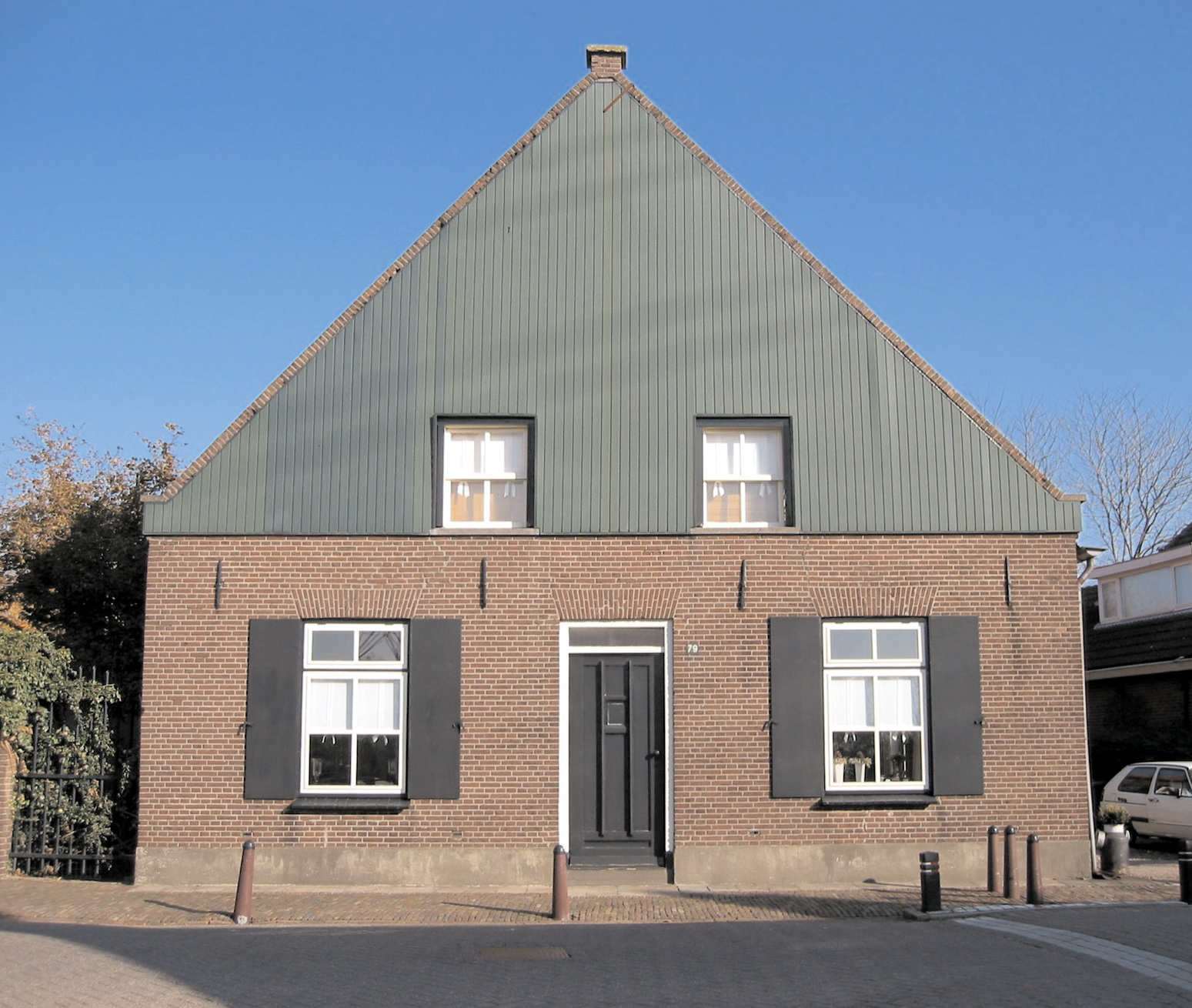lijk, geprofileerd kozijn en is afgesloten met een luik. Het schuifraam in het rechter deel van de gevel is, inclusief de hardstenen onderdorpel, zijn recent vernieuwd.Rechterzijgevel:De in kruisverband gemetselde rechterzijgevel is voorzien van diverse gevelopeningen. Geheel links en in het midden van de gevel bevindt zich onder een anderhalfsteens strek een modern, zesruits schuifraam in een nog oorspronkelijk, getoognageld kozijn. De luiken zijn vernieuwd; van de oorspronkelijke situatie resteren enkel de luikduimen in de dagkanten van het kozijn. Rechts hiervan is een smal, drieledig oorspronkelijk venster onder een steens strek met getoognageld kozijn en vernieuwd raamhout. Het kleine vierruits venster met halfsteens rollaag hierop volgend is, gelet op het inboetwerk rondom de gevelopening, later toegevoegd. In de gevel zijn verscheidene ankers aangebracht. In het rechter deel van de gevel is, onder een anderhalfsteens korfboog, een brede inrijpoort naar het bedrijfsgedeelte van het pand. De dubbele staldeuren zijn vernieuwd. Tegen de achtergevel bevindt zich nog onder een halfsteens rollaag een manshoge deur met ronde bovenzijde. In het stalgedeelte zijn tenminste twee gebinten geplaatst, die aan de gevel zijn gekoppeld met dubbelgeknoopte ankers.Achtergevel:Vanaf de straatzijde was het niet mogelijk de achtergevel waar te nemen.Interieur:Van het interieur zijn geen gegevens bekend.Redengevende omschrijvingHet pand heeft monumentale waarde vanwege de gevels, de bouwmassa, de balklagen en de kapconstructie en de situering. De voormalige boerderij heeft ensemble waarde en historische waarde, en is representatief voor de negentiende-eeuwse boerderijenbouw. | 2 |