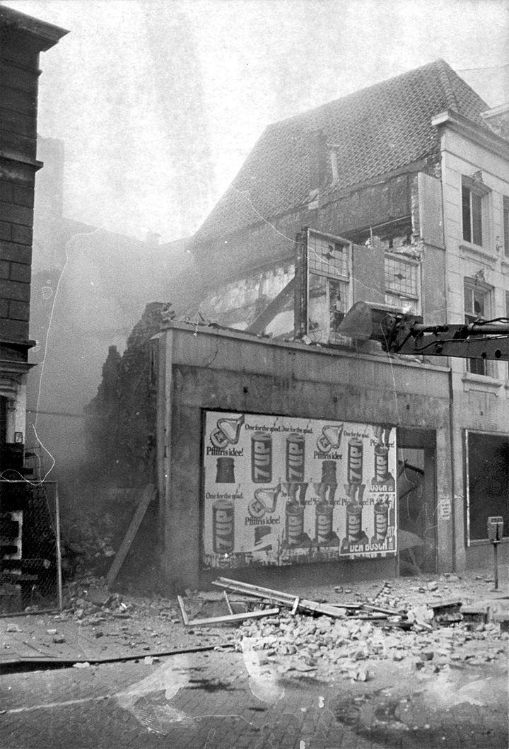 het midden van de 16de eeuw zal de osendrup bij nummer 21 getrokken zijn op het moment dat de eigen zijmuur van dat pand gesloopt is en de balklagen in de zijmuur van het hoekpand zijn opgelegd. Deze zijmuur dateert uit het derde kwart van de 15de eeuw, zodat we mogen concluderen dat de osendrup oorspronkelijk tot het hoekpand behoord heeft. Uit archeologisch onderzoek is gebleken dat er in de 13de eeuw een houten voorganger met ingegraven palen gestaan heeft. Dergelijke panden waren vrijstaand, zodat er een onbebouwde strook grond tussen de huizen aanwezig was. De stenen opvolger uit de 14de eeuw zal eveneens vrijgestaan hebben. Bij de bouw omstreeks 1462 ± 5 jaar (dd) van het pand dat we nu nog kennen, bleef de osendrup aan de rechter zijde gehandhaafd. Het 15de-eeuwse pand is een traditioneel Bossch woon/werkhuis met voorhuis, dat voorzien was van een houtskeletconstructie, vermoedelijk een insteekverdieping, een brandmuur en een smaller achterhuis. Beide bouwdelen zijn onderkelderd. In de kelder onder het voorhuis is een kleine oven aangetroffen. Gezien de geringe afmetingen zal het oventje voor huishoudelijk gebruik gediend hebben. In 1549 wordt het hoekhuis omschreven als: 'huis, erf, tuin, achterhuis en stenen brug'. Klaarblijkelijk liep het perceel tot aan de Binnendieze door en stond er een afzonderlijk achterhuis. De stenen brug zal aan het eind van de Kokschepoort gelegen hebben. Het straatje was zelf ook belast met een grondcijns, maar die was verbonden met het pand aan de linker zijde. De smalle ruimte naast het achterhuis is | 152 |