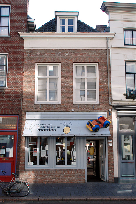 De huidige percelering is hier in het geheel niet mee in overeenstemming: de grens van het brede perceel bevind zich op circa 1,40 m van de linker zijmuur van het pand. Aan de linker zijde van deze grens strekte zich een groot perceel uit dat tot het Geertruiklooster behoorde. Dit houdt in dat de huidige percelering en het pand pas na de opheffing van het klooster tot stand zijn gekomen. Dit kan echter in het huidige gebouw niet bevestigd worden, aangezien het geen bouwfragmenten ouder dan de 19de eeuw bevat. | 154 |