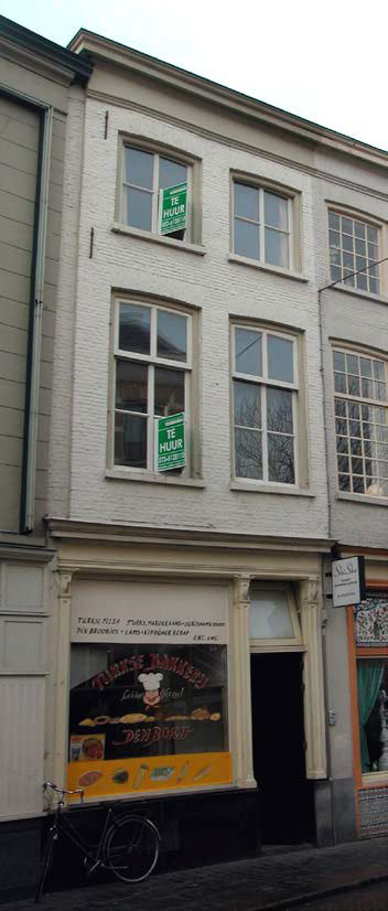 valraam. Links hiervan een groot etalagevenster. De vensters op de verdiepingen zijn licht getoogd. Op de eerste verdieping twee vensters met kozijnen met duivejagersprofilering en toognagels. Deze vensters bevatten (vernieuwde) 6-ruits schuiframen. Onder de vensters zit een (geschilderde) hardstenen lekdorpel en een rollaag. Boven de vensters is een strekse boog uitgevoerd. Deze detaillering komt terug bij de twee vensters op de zolderverdieping. Deze vensters bevatten eveneens kozijnen met een duivejagersprofilering en toognagels en een 4-ruits schuifraam. Uiterst links is over de gehele hoogte van de gevel een verspringing in het metselwerk zichtbaar en ter hoogte van de eerste verdieping en de zolderverdieping zijn twee muurankers zichtbaar. De lijstgevel wordt afgesloten door een hoofdgestel met architraaf, fries en kroonlijst. Dit hoofdgestel loopt door over de gevel van het rechter buurpand. Zijgevels:Het pand wordt aan beide zijden begrensd door bebouwing.Achtergevel:De achtergevel is niet in zijn geheel zichtbaar vanuit de openbare ruimte. Alleen een deel van de geveltop is te zien vanaf de ingang van het steegje aan de Smalle Haven (steegje behoort niet tot de openbare ruimte). In het documentatierapport uit 2004 wordt deze gevel als volgt beschreven: De achtergevel is een 17de-eeuwse tuitgevel met speklagen van zandsteen en een vlechting waarvan de geveltop en de schouders zijn weggebroken. De oorspronkelijke 17de-eeuwse gevel is in de 19de eeuw verhoogd. Op de eerste verdieping zijn een tweetal latere gevelopeningen aangebracht met daarboven een segmentvormige ontlastingsboog. Op de zolderverdieping een latere gevelopening met ontlastingsboog. De oorspronkelijke speklagen zijn hier doorbroken. Blokken zandsteen zijn hergebruikt als aanzet- en sluitsteen. In de geveltop zit een oeil-de-boeuf met een zandstenen omranding.Ruimtelijke indeling:Op een verbouwingstekening uit 1998 staat de ruimtelijke indeling van het pand als volgt weergegeven: De deur rechts in de gevel biedt toegang tot een portaal met de toegang tot de bovenwoning en de toegang tot de bakkerswinkel op de begane grond. Rond 2000 is de plaats van de trap naar de verdieping van de rechter achterhoek van het voorhuis verplaatst naar rechts voor. De rest van de begane grond van het voorhuis is één grote ruimte en geheel in gebruik als winkel. De begane grond van het achterhuis fungeert als bakkerij. Op de eerste verdieping en zolderverdieping zijn in 2000 nieuwe woonvertrekken gemaakt.Constructies:In een documentatierapport uit 2004 is het volgende met betrekking tot de constructies van het pand opgenomen: Zowel de verdiepingsbalklaag (XVIII) als de zolderbalklaag (grotendeels vernieuwd in 2000) van het voorhuis is enkelvoudig en voorzien van een profilering. Het zadeldak met dwarskapje ter plaatse van de voorgevel wordt gedragen door een drietal spanten met | 3 |