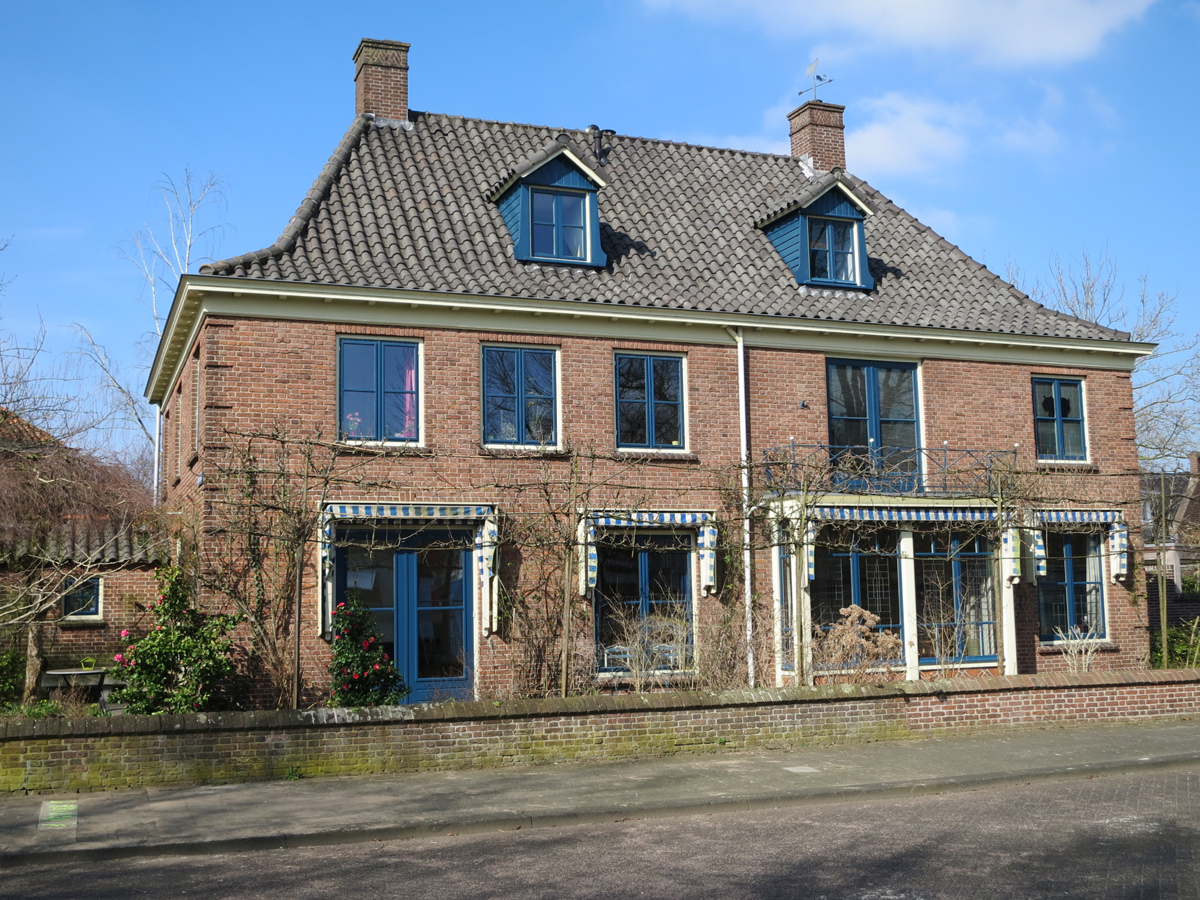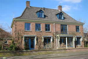 BeschrijvingAlgemeen:Dit pand is gelegen op de hoek van de Ophoviuslaan en de Adriaan van Ostadestraat. Het dubbele woonhuis onder één dak omvat drie niveau’s: begane grond, eerste verdieping en zolder. Het pand heeft een rechthoekige grondplan en is aan de zuidzijde voorzien van een kleine eenlaags uitbouw onder een met pannen gedekt schilddak. Het geknikte schilddak is gedekt met gesmoorde Romaanse pannen. Het dak is voorzien van twee schoorstenen die elk met siermetselwerk gedecoreerd zijn. Het pand is voorzien van een gemetselde tuinmuur met ezelsrug.Voorgevel:Deze in staand verband gemetselde lijstgevel is net boven het maaiveld voorzien van een stroomlaag. Op begane grond niveau bevindt zich een pui met voordeur en aan weerszijden een smal glas-in-lood raam. Boven de deur bevindt zich een glas-in-lood bovenlicht dat versierd is met siersmeedwerk. De anderhalfsteens strekse boog boven de pui is voorzien van een hoger gemetselde sluiting en een laag uitgemetselde koppen. De vensteropening ter rechterzijde van de voordeur heeft eenzelfde strekse boog. Het venster heeft twee draaiende tweeruits ramen. Tussen de voordeur en het venster bevindt zich een nis waarin eens een Mariabeeld gestaan zal hebben. Onder deze nis bevindt zich een hardstenen brievenbus. Ter linkerzijde van de voordeur is een eenlaags uitbouw onder flauw hellend zadeldak gerealiseerd. Aan de straatzijde is deze uitbouw voorzien van een vierruits venster met keramische raamdorpels en halfsteens rollaag.Het eerste verdiepingniveau heeft drie identieke vensters. De symmetrisch verdeelde vensteropeningen hebben een vermoedelijk steens rollaag en bakstenen onderdorpels. De kozijnen hebben twee draaiende tweeruits ramen. De hoeken van de gevel zijn over de gehele hoogte voorzien van enkele terugliggende bakstenen. Op deze wijze wordt een hoekketting gesuggereerd. De lijst die de gevel aan de bovenzijde afsluit is voorzien van een uitstekende, geprofileerde bakgoot op klossen. Het dakschild heeft een modern dakvenster. Linkerzijgevel:De linkerzijgevel gaat grotendeels schuil achter een schutting, begroeiing en enige bebouwing. Op begane grond niveau bevinden zich enkele vensters en mogelijk één of twee deuren. Het motief met de terug liggende bakstenen op de hoeken van de gevel is in de linkerzijgevel voortgezet. Op eerste verdiepingniveau zijn vier vensters zichtbaar. De buitenste twee vensteropenin- | 2 |
