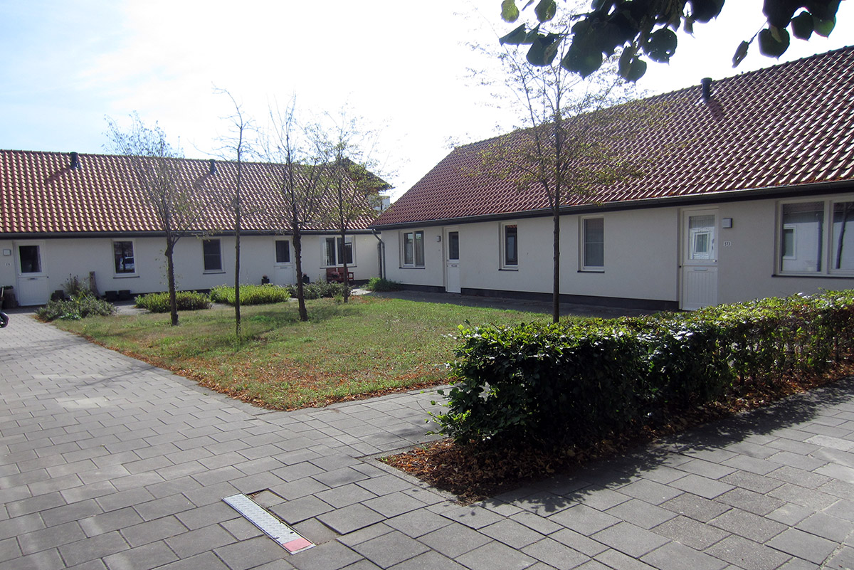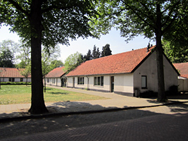 BeschrijvingAlgemeen:De noodwoningen staan deels op een gedempt deel van de rivier de Aa. Door een tekort aan woningen als gevolg van oorlogsverwoestingen zijn deze noodwoningen in 1946 gerealiseerd. De woningen boden en bieden plaats aan 2 gezinnen per bouwmassa (2-onder-1-kap). De woningen zijn in hofjes (U-vormen) gegroepeerd, een van de hofjes is groter doordat er twee panden extra aan de straatzijde staan, in plaats van één bij de andere hofjes. In de vrije ruimte tussen de gebouwen zijn schuurtjes gebouwd die behoren bij de oorspronkelijke opzet. De kleine berghokken zijn elk voor twee wooneenheden bestemd en bestaan daarom uit twee eenheden. De hokken bevatten per eenheid een deur en een kleppend venster. De hofjes zijn ingericht met de woningen, een stoep voor de voordeuren en een rechthoekig grasveld met lage bomen in het midden. Tussen de gebouwen, in de U-vorm en in de ruimte tussen de kopse zijden aan de straat bevinden zich tuinhekjes die zijn opgehangen tussen betonnen afrasteringspalen.De woningen:De woningen zijn voornamelijk uit beton opgetrokken zoals muren, vloeren en kozijnen. De zolders zijn niet beloopbaar, de balken zijn aan de onderzijde betimmerd. Het dak is opgebouwd uit stalen hoekstrips met een lattenwerk en riet, op deze laag zijn de panlatten en pannen bevestigd. De daken zijn bedekt met oranje-rode verbeterde Hollandse pannen en voorzien van zinken mastgoten.Eind jaren ‘70 van de 20ste eeuw zijn de woningen aan de buitenzijde geïsoleerd en nogmaals gerenoveerd in 1983. In 1983 zijn tevens twee gebouwen geheel vernieuwd (nrs. 565/566 en 577/578) deze zijn naar oude vorm herbouwd op de hoogte en de breedte na. Tevens zijn op deze nieuwe daken rode betonpannen gebruikt. Het aantal gevelopeningen aan de hofzijde en de achterzijde wisselt. De woningen die haaks op de straat staan hebben per woning aan de hofzijde een deur en een driedelig venster, waarvan het raam bij de deur te openen is. De deuren bestaan uit een deel met schrootjes aan de onderzijde en een deel met glas aan de bovenzijde. De woningen evenwijdig aan de straat hebben per woning aan de hofzijde een deur en een tweedelig venster waarvan eveneens het raam bij de deur te openen is. In de kopse zijden van de woningen zijn een of twee ramen of in een enkel geval een raam en een deur te vinden. De achtergevels van de woningen haaks op de straat hebben drie gevelopeningen, oorspronkelijk een deur en vijf vensters. Na verbouwingen is een aantal vensters veranderd in deuren. | 1 |