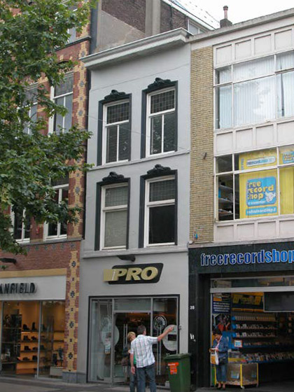 Context(Bouw)historie:Het pand Pensmarkt 26 is een relatief klein pand waarin heden op de begane grond een winkel is gevestigd, met bedrijfsruimte op de verdiepingen. Het huis werd vroeger “de Beer” (1546), “Inde Drije Monnicken” (1568) en “den Buijdel” (1603) genoemd en het dateert in kern uit de 13de - 14de eeuw (zijmuren). De linker zijmuur is van oorsprong onderdeel van 13de-eeuwse ‘huis van de hertog’. Reeds in 1368 is Pensmarkt 26 als stenen huis aangemerkt. In de volgende eeuwen werd het pand verschillende malen verbouwd. Onder andere werd een keldergewelf aangebracht (15de-17de eeuw) en rond 1875 werd de gevel verbouwd tot gepleisterde lijstgevel. In de late 19de eeuw is het dak gewijzigd in een lessenaarsdak dat tegen het linker buurpand werd aangebouwd. In 1934 is de indeling van het pand gewijzigd, is het lessenaarsdak vervangen door een plat dak, werd de achtergevel opnieuw opgetrokken (of van een klamp werd voorzien) en werd de achterplaats overdekt. De winkelpui is vernieuwd in 1965, en later in de 20ste en de vroege 21ste eeuw gebeurde dat nog verschillende malen.Ligging:Het gebouw is gelegen aan de westzijde van de Pensmarkt in een gesloten gevelwand. De Pensmarkt is vanouds een deel van het grote driehoekige (markt)plein dat het middelpunt van de stad vormt. In de beginperiode van de stad (de 13de-15de eeuw) werden op dit plein gebouwen met stedelijke functies gecreëerd, zoals een lakenhal (later vleeshal), een broodhuis en het eerste stadhuis. Door de aaneengesloten bouw van deze panden werd het westelijke deel van de Markt van het oostelijke afgescheiden. Dit westelijke gedeelte, dat de vorm heeft van een zeer brede straat, werd de Pensmarkt genoemd. Het bouwblok ten westen van de Pensmarkt ligt op het hoogste punt van de oude stad, zeker na enige ophogingen die in de 13de eeuw plaatsvonden. Links van het onderhavige pand stond in de 12de en de vroege 13de eeuw het stenen huis van de hertog van Brabant, dat in de 13de eeuw werd vervangen door het “Lombardenhuis”. Behalve funderingen en kelders is hier weinig van bewaard gebleven. Ook van het Minderbroederklooster, dat in de 13de eeuw werd gevestigd op het achterterrein van een aantal percelen in de zuidelijke helft van het bouwblok, is weinig meer bewaard gebleven. In de 13de eeuw zijn aan de Pensmarkt de eerste grote stenen, burgerlijke huizen van de stad gebouwd. Dit gebeurde op grote percelen die aan de westzijde tot aan de eerste stadsmuur reikten. In de volgende eeuwen zijn deze grote percelen stukje bij beetje opgesplitst in kleinere kavels. Dit geldt ook voor het onderhavige perceel, dat is afgesplitst van een groter perceel dat ook het rechter buurpand nr.28 omvatte. In 1823 liep het perceel van nr.26 nog bijna tot aan de Dode Nieuwstraat, maar naderhand werd het achterste deel afgesplitst. Tegenwoordig grenst het daardoor aan de achterzijde aan een kleine binnenplaats behorend bij een klein perceel dat geheel is ingesloten in het bouwblok.BeschrijvingAlgemeen (hoofdvorm, kap):Het hoofdvolume bestaat uit een voor- en achterhuis. De plattegrond heeft een langwerpig rechthoekige vorm en is vrij smal. Het huis is geheel onderkelderd en bevat verder een hoge begane grond en twee verdiepingen onder een plat dak. Op de verdiepingen bevinden zich voor- en achterin het pand rookkanalen tegen de linker zijmuur. Aan de achterzijde is er een kleine eenlaags aanbouw uit 1949-‘ 50 op de voormalige achterplaats. | 2 |