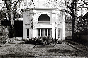 Tuin en tuinpaviljoen Huizinghe De LoetIngang: Triniteitstraat 11Huizinghe De Loet in de Peperstraat is een typisch voorbeeld van de grote patriciërshuizen die deel uitmaakten van de 18e- en 19e-eeuwse schaalvergroting aan weerszijden van deze straat. Toen werden smallere, middeleeuwse percelen en huizen samengevoegd tot representatieve huizen voor vooraanstaande burgers. Een soortgelijke ontwikkeling zien we ook langs de nabijgelegen Oude Dieze en in een deel van de Postelstraat. De Loet werd tussen 1822 en 1832 gebouwd in opdracht van Jacob de Bergh, vermoedelijk onder architectuur van de Brusselse architect Henri Partoes. De tuin met theehuis is een treffend, maar in ’s-Hertogenbosch uiterst zeldzaam voorbeeld van een 19e-eeuwse siertuin.