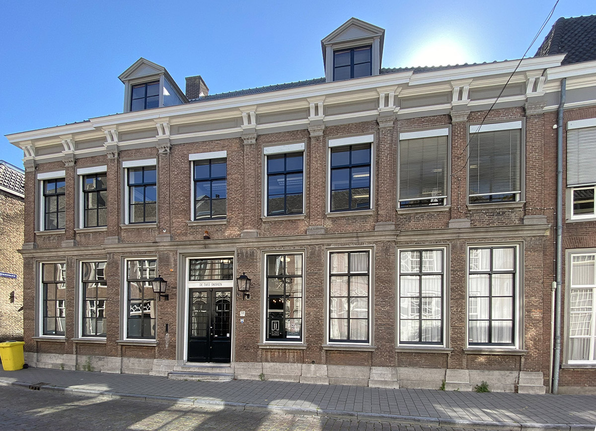 De Twee Snoeken : ArchitectenbureauIn dit herenhuis en buurpanden is sinds 15 jaar het bekende architectenbureau ‘De Twee Snoeken’ gevestigd. Deze naam verwijst naar het gelijknamige pand in de Kruisstraat waar dit bureau eerder was gehuisvest. Het gebouwencomplex was tussen 1940 en 1998 in bezit van Waterschap de Aa. Het grote herenhuis ‘het Wapen van Emden’ dateert uit 1793 en werd gebouwd in opdracht van Thomas van Rijckevorsel. Het heeft een achtergelegen koetshuis en een ruime tuin, waarvoor een aantal kleine huisjes van het voormalige klein Begijnhof moest worden gesloopt.Het interieur van het complex bevat diverse 19e-eeuwse monumentale onderdelen, zoals de vergaderzaal.