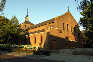 Het metselwerk van de gevels bestaat uit rose-rode baksteen in een wild verband en met platvolle voegen. De lekdorpels van de vensters alsook de diverse rond- en segmentbogen bestaan eveneens uit baksteen. Langs de topgevels bevinden zich bakstenen vlechtingen en de op de gevelhoeken aansluitende schouders zijn afgedekt met betonnen dekplaten. De kerkvensters bevatten sober glas-in-lood in stalen ramen. Voorgevel:De kerk heeft een symmetrische voorgevel met op de hoeken aansluitende en zich naar boven toe verjongende steunberen. In het midden bevindt zich de onder een dubbele rondboog gevatte hoofdingang, voorzien van een dubbele deur met panelen en lichtbruin gebeitste kleurstelling. Een betonlatei en hardstenen plinten/dekblokken verlevendigen de ingangspartij. Uiterst links en rechts bevinden zich zij-ingangen met een enkelvoudige deur en voorzien van een flauwe segmentboog. Twee smeedijzeren lantaarns en vier rondboogvensters markeren boven de hoofdingang de voorzijde van het middenschip, waarvan de topgevel wordt bekroond door een smeedijzeren topkruis.Zijgevels:Aan de zijkanten wordt de aansluiting op de voorgevel geaccentueerd door een grotendeels blinde travee met een doorgestoken topgevel en een zadeldakje. Verder worden de zijgevels gekenmerkt door de lichtbeukreeksen van de zijbeuken, bestaande uit rondboogvensters. Aan de noordwestzijde van de kerk sluit op de zijbeuk links een uitbouw met zadeldak en topgevel aan. Aan de zijkanten is deze uitbouw blind maar aan de kopzijde bevindt zich een risalerend bouwdeel met een klein rondboogvenster en een met koper gedekt schilddakje. Links van de uitbouw is de kerk bereikbaar via een zij-ingang als voornoemd. Verder bevindt zich hier tweemaal een gekoppeld rondboogvenster, deel uitmakend van een langs het hoogkoor gesitueerde zijkapel. De gevelindeling aan de zuidoostzijde van de kerk is vergelijkbaar, maar ditmaal sluit in plaats van voornoemde uitbouw een zijvleugel (sacristie) aan.De sacristie is éénlaags en voorzien van een zadeldak met dekking als genoemd. Aan de kopzijde een in 1996 toegevoegd bouwdeel dat grotendeels vrij ligt. Aan de zuidwestzijde een tussen rondboogvensters gelegen ingang met een enkelvoudige deur en een flauwe segmentboog. De noordoostelijke gevel is vergelijkbaar maar zonder ingang. | 5 |