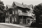 InleidingNabij de Oude Berlicumseweg op een vrij landelijk aandoende locatie ten zuiden van het oude hoofdgebouw gelegen voormalige DIRECTEURSWONING met omliggende siertuin en waterloop. Het vrijliggende pand werd in 1882 gebouwd in Chaletstijl als woonhuis van de toenmalige directeur van Coudewater.De woning werd later een paviljoen voor patiënten ('De Wetering') en wordt thans als kantoor gebruikt. Uitwendig op onderdelen gewijzigd; inwendig gemoderniseerd alhoewel de oorspronkelijke indeling grotendeels bewaard is gebleven. Het inwendig verbouwde koetshuis valt buiten de bescherming. OmschrijvingGedeeltelijk onderkelderd tweelaags bakstenen pand met kapverdieping onder een met uit Duitsland afkomstige -van mulden en ruitpatronen voorziene- pannen gedekt afgeplat schilddak met aankappende zadeldaken, alle met groot overstek in Chaletstijl. Bakgoten, dakoverstekken met windveren en houten stijl- en regelwerk op decoratief gesneden houten klossen. Het grondplan beschrijft een Grieks kruis met in de oksel van achtergevel en linker zijgevel een drielaags traptoren als bediendenopgang onder een met leien in Maasdekking gedekt tentdak met overstek. In de oksel van achtergevel en rechter gevel zoals aan de rechter gevel een ligterras op ijzeren kolommen uit de jaren zestig van de twintigste eeuw. Het in kruisverband gemetselde muurwerk wordt verlevendigd door het decoratief gebruik van andere kleuren baksteen in onder meer de topgevels, verder door speklagen en tandlijsten. Veelal versoberde, vaak T-vormige schuifvensters, rechtgesloten onder decoratieve strekken of rondbogen. Verder rondboogvensters in de topgevels en diverse oculi in de zijgevels. Vensters grotendeels met hardstenen afzaten. Voorgevel van vijf traveeën als enige met twee aankappende zadeldaken, aan de overige gevels één zadeldak. Middentravee met inpandige entree met van siersmeedijzeren rooster voorziene enkelvoudige beglaasde paneeldeur en bovengelegen loggia, beide afgezet met rondbogen op uitkragend metselwerk. Linker gevel, met deels gekoppelde vensters, overeenkomstig gedetailleerd. Hetzelfde geldt voor de achter- en rechtergevel met een recentelijk ingrijpend gewijzigde onderbouw.Van het interieur, met centraal gelegen hal en tegen de linker gevel gesitueerd trappenhuis, zijn o.a. vermeldenswaard: originele kelder met troggewelf en voorraadvakken; hal met marmeren vloer; trap met balusters, originele kapverdieping met houten spanten. WaarderingDe voormalige directeurswoning is van algemeen belang. Het object bezit cultuurhistorische waarden als bijzondere uitdrukking van de ontwikkelingen binnen de geestelijke gezondheidszorg in de negentiende en twintigste eeuw wat betreft bestemming, verschijningsvorm en bedrijfsmatige opzet. Daarnaast vanwege het belang van de woning met traptoren voor de typologische ontwikkeling van het herenhuis.Het object bezit architectuurhistorische waarden wegens de hoogwaardige esthetische kwaliteiten van het ontwerp en de bijzondere ornamentiek in met name de kappen. Het object bezit ensemblewaarden als essentieel onderdeel van een historisch gegroeid psychiatrisch complex. Daarnaast vanwege de situering op het terrein van Coudewater zelf in de onmiddellijke nabijheid van de overige objecten en als markant onderdeel van de historische bebouwing aan de Berlicumseweg. Het object is van belang wegens de gaafheid van de architectonische hoofdvorm en elementen van het interieur en de bewaard gebleven oorspronkelijke opzet in een landschappelijke setting met belendend koetshuis. Tenslotte vanwege de in Nederland zeer zeldzame Duitse dakpannen. |