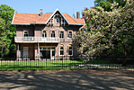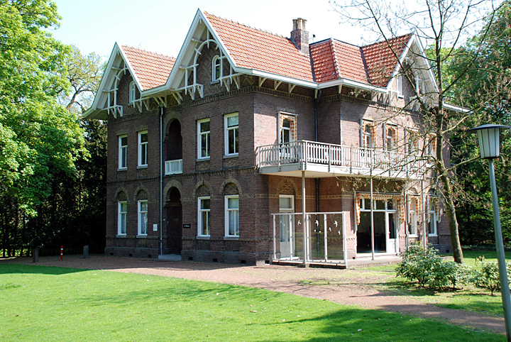 Chaletstijl. Baksteen met gele siermotieven. Siermetselwerk. T-ramen, deels onder togen, deels met strekken. Zadeldaken en afgeplat schilddak. Overstekken met ajourvakwerk. Muldenpannen. Ligterras op ijzeren palen. Koetshuis onder zadeldak. Symmetrische voorgevel. Schilderachtige topgevel. Gave directievilla, onderdeel van zwakzinnigeninrichting, van architectuurhistorisch en sociaalhistorisch belang. |