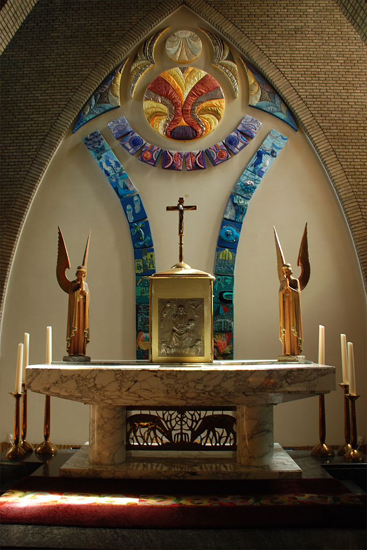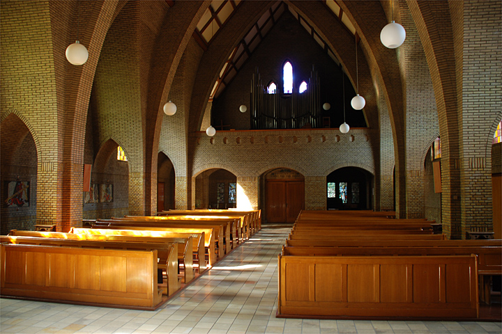 In 1936 wordt het besluit genomen om op Coudewater een nieuwe kerk en een nieuw klooster te gaan bouwen. De keuze van de architect vormde geen probleem. Het werd Jos Bekkers uit Haarlem, die al vele jaren alle grote bouwwerken van Coudewater opgedragen kreeg en min of meer vanzelfsprekend ook de nieuwe kerk ging bouwen. In augustus 1937 toog het bestuur naar Venray en bezichtigde daar, onder leiding van Jos Bekkers, het nieuw gebouwde noviciaat van de Broeders van Liefde en een andere nieuwbouw, het St. Vincentiushuis, een eenvoudige verpleeginrichting. Daarna werd de architect verzocht zijn ontwerp voor te leggen. Toen de bouw enigszins gevorderd was (de eerste spade ging in de grond op 17 maart 1938), werd op maandag 10 oktober 1938 een gedenksteen in de muur bij de ingang van het klooster geplaatst. De dan 6-jarige Jules Kortenhorst metselde de gedenksteen in. Anderhalf jaar later was het werk voltooid. De dag van de inzegening werd vastgesteld op 10 april 1940. Het werd een grootse plechtigheid met als ere-gast de bisschop van 's-Hertogenbosch, mgr. A. Diepen. Onder de notabelen bevonden zich o.a. jhr. Von Heyden, burgemeester van Rosmalen, en pastoor Schoenmakers van de parochie Maliskamp. Onder de geschenken die allerwegen werden aangedragen om de kerk op te sieren, bevond zich de godslamp welke werd geschonken door de architect Bekkers.