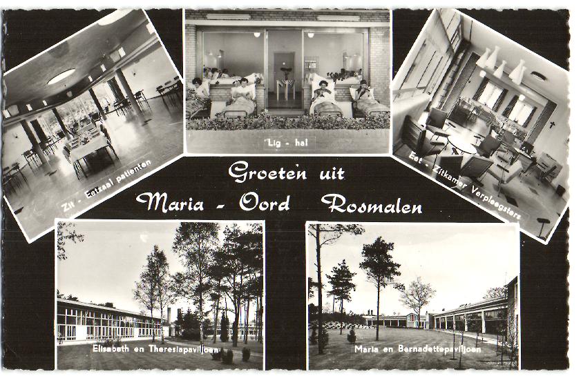 Maria-Oord is door de ZUSTERS VAN LIEFDE VAN TILBURG in 1945 opgericht als sanatorium en sanatoriumschool. Ook gaven de zusters lager en voortgezet onderwijs. Het recent verbrande sanatorium was ontworpen door architect B. Clement uit Eindhoven. Het klooster in Bossche School stijl van J. de Reus uit Oss telt vier bouwlagen en was rond 1960 voltooid. Tot het complex behoorde ook het vriendelijke, lage, uit hout opgetrokken retraite- en vakantiehuis H. Hubertus. Het werd geopend in 1960 en is vanaf 1983 niet meer door de zusters gebruikt. In 1995 is het klooster opgeheven. Het Hubertushuis werd daarna als Antoniushuis bestemd voor vluchtelingen. De woonomstandigheden zijn slecht en men overweegt (januari 2006) het gebouw te slopen zodra men een ander onderdak voor de vrouwen en kinderen heeft gevonden. Het bakstenen gebouw heeft een parelvormige plattegrond en flauw hellende zadeldaken. De bakstenen gevels hebben enige details in beton en vertonen een mengeling van zakelijke en traditionele elementen. De ingang is opgenomen in een soort westwerk. In de deuren en ramen is ijzer en kunststof toegepast. De kapel heeft een schip van zes traveeën met hoge rechthoekige ramen. Boven het koor een lantaarn en aan de oostzijde een slanke zadeldaktoren met twee galmgaten. Er is een parkachtige tuin met oude eikenlanen. | 701 |