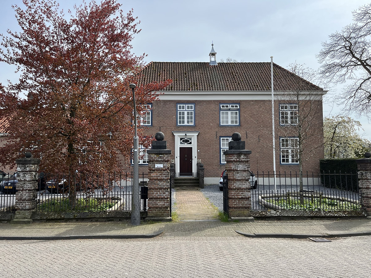 geprofileerde bakgoot op klossen.Linkerzijgevel:De in kruisverband gemetselde linkerzijgevel van het hoofdgebouw gaat grotendeels schuil achter het koetshuis en is voorzien van een kroonlijst met een geprofileerde bakgoot. In de lijst zijn muurplaatankers zichtbaar.De linkerzijgevel van het koetshuis is voorzien van twee vensteropeningen. De vensters zijn identiek aan de vensters in de voorgevel. Opvallend is dat de vensters enkele baksteenlagen lager in de gevel zijn aangebracht. De gevel heeft een geprofileerde bakgoot op klossen. Rechterzijgevel:De rechterzijgevel, een gemetselde lijstgevel, is ten tijde van de uitbreiding van de pastorie bepleisterd. Deze bepleistering bevat lintvoegen en is aangebracht om de overgang van het bestaande en het nieuwe bouwdeel te verbergen. Op zowel het begane-grondniveau als de eerste verdieping bevinden zich twee vensteropeningen, doch niet in dezelfde as. De vensters zijn identiek aan de vensters in de voorgevel. Het deel van de gevel dat behoort bij de tweelaags uitbouw onder plat dak is blind. De eenvoudige kroonlijst heet een geprofileerde bakgoot. Onder deze goot is een aantal muurplaatankers zichtbaar. De serre is in schoonmetselwerk gemetseld. De puien in de serre zijn stilistisch identiek aan de vensters in de hoofdbouw, en voorzien van bakstenen onderdorpels.Achtergevel:De bepleisterde achtergevel van de tweelaags aanbouw heeft vier vensterassen. Het beganegrondniveau gaat grotendeels schuil achter de serre onder een plat dak. Ter rechterzijde van deze serre bevindt zich een vensteropening. Eén van de vier vensteropeningen op het eerste- | 2 |