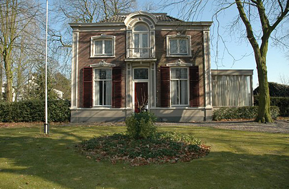 BeschrijvingAlgemeen:Dit laat negentiende-eeuwse neo-classicistische pand is gelegen aan de Stationsstraat in Rosmalen. De toegang tot het perceel met de vrijstaande woning is voorzien van een negentiende-eeuws hekwerk met daarop de naam "Hoog Oord". Het pand omvat een kelder, een begane grond en een zolderverdieping onder een afgetopt tentdak. De schilden van het dak zijn gedekt met gesmoorde, verbeterde Hollandse pannen. In de tweede helft van de twintigste eeuw is het pand aan de rechterzijde met een eenlaags serre uitgebouwd.Voorgevel:Deze neo-classicistische lijstgevel heeft een middenrisaliet en hoeklisenen in de vorm van een langgerekt paneel. Het middenrisaliet bevat de verdiept in het gevelvlak liggende voordeur met getoogd bovenlicht. Hierboven bevindt zich een hardstenen balkon op twee consoles en voorzien van een smeedijzeren balkonhek. Het balkon is toegankelijk via de vernieuwde naar buiten draaiende deuren op de eerste verdieping. Boven de deuren bevindt zich een halfrond bovenlicht. Het middenrisaliet is geaccentueerd met een brede gepleisterde omlijsting die nagenoeg identiek is aan de hoeklisenen. Het risaliet is afgesloten met een gebogen fries dat doorloopt in de kroonlijst van de gevel. Aan weerszijden van het middenrisaliet bevindt zich op begane grond niveau een groot venster. Dit T-venster heeft een getoogd, glas-in-lood bovenlicht. De vensteropeningen hebben hardstenen onderdorpels en een zware stucwerk omlijsting die aan de bovenzijde voorzien is van een kuif. De vensters zijn voorzien van buitenluiken met stores. Op het zolderniveau is het middenrisaliet aan beide zijden voorzien van een aanzienlijk kleiner, getoogd, tweeruits venster. De vensteropeningen hebben hardstenen onderdorpels en een zware stucomlijsting met van kuif. De gevel heeft een gepleisterde of hardstenen plint. De kroonlijst is voorzien van een geprofileerde bakgoot.Linkerzijgevel:De linkerzijgevel is in blokmotief bepleisterd en gaat grotendeels schuil achter de begroeiing op het perceel. De gevel bevat twee vensteropeningen. De T-vensters zijn getoogd en voorzien van buitenluiken met stores. De gevel is aan de bovenzijde afgesloten met een eenvoudige bakgoot.Rechterzijgevel:De rechterzijgevel is net als de linkerzijgevel in blokmotief gepleisterd. Het grootste deel van de gevel gaat schuil achter een moderne serre. Het dakschild is voorzien van een modern daklicht. | 1 |