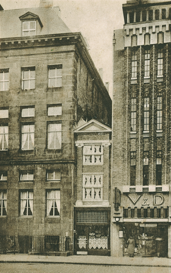 Smalste huis van de stad, breed 2,60 meter, diep 18 meter. In de volksmond werd het ook wel "Klein Stadhuis genoemd. (had dezelfde architect als het stadhuis: P.Minne).
