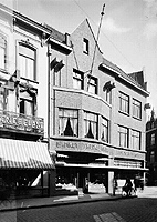 't Kupke, banket en kokerij met gedeelten van de belendende panden van o.a. links Maison de Blanc en rechts lederwaren en koffers.