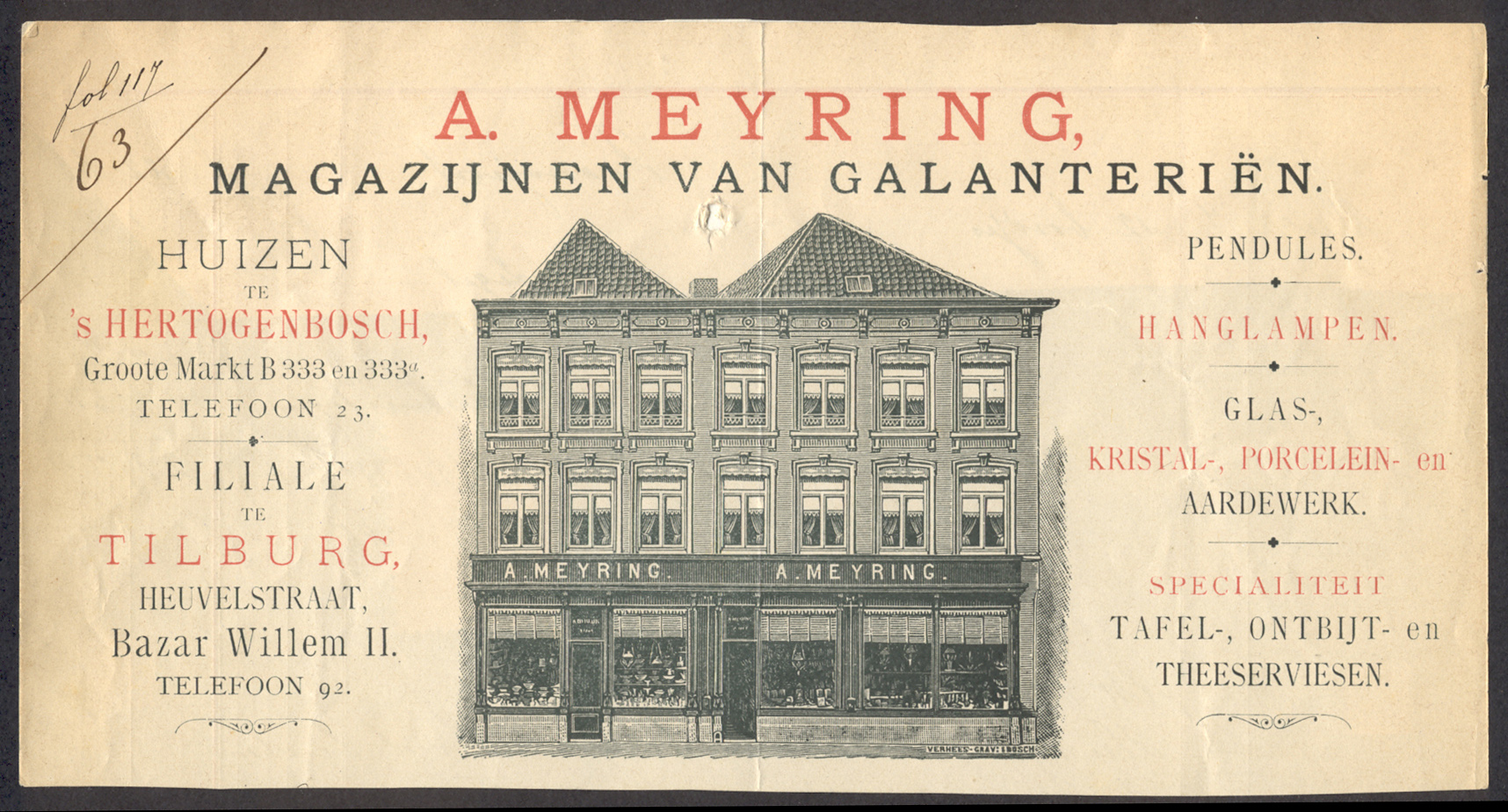 Hiernaast had men voorheen staan de huizen, genaamd de Regenboog, het Klein paradijs en het Groot paradijs, op de plaats waarvan thans staat het winkelhuis van Jos. Meyring.