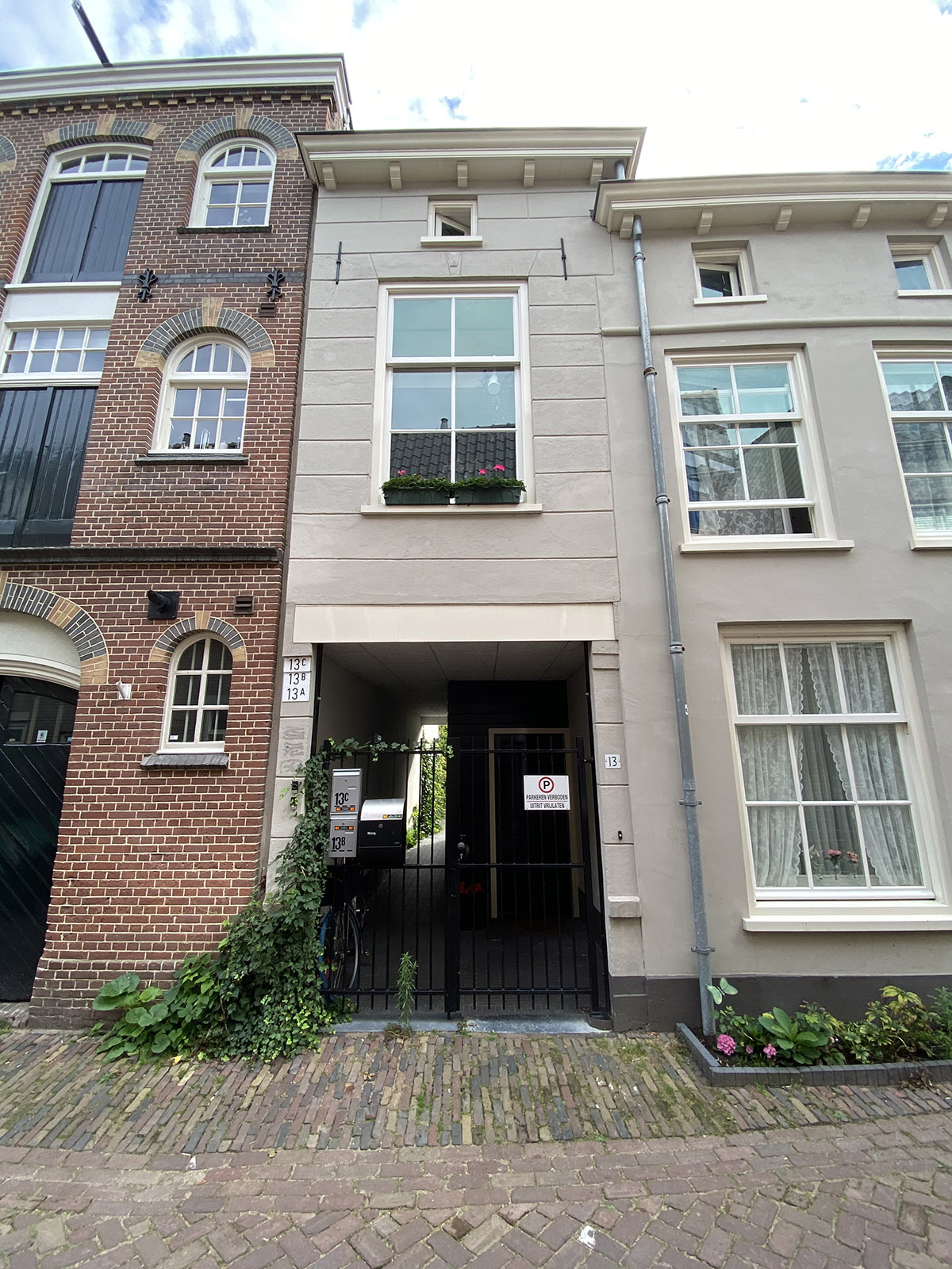 BeschrijvingAlgemeen:De panden Schilderstraat 3 t/m 13 vormen tezamen een ensemble van ondiepe (resp. 4,5 m., 9,5 m., 9,5 m. , 8 m. en 6,5 m.) huizen aan de oostzijde van de Schilderstraat. Zij zijn gebouwd op het voormalige achtererf van het hoekpand Hinthamerstraat 150 (betreft Schilderstraat nr. 3) en vervolgens de gezamenlijke achtererven van Hinthamerstraat 150 en 152 (betreft Schilderstraat 5 t/m 13). De panden zijn als zodanig te beschouwen als een voorzetting van vaste achterhuizen van het genoemde hoekpand aan de Hinthamerstraat en hebben zadeldaken met nokrichting evenwijdig aan de Schilderstraat. Als bouwvolume staan zij weergegeven op het eerste kadastrale minuutplan van ca. 1815 en zullen in aanleg dateren uit de 18e eeuw of wellicht vroeger. De woningscheidende zijmuren en restanten van achtergevels kunnen in principe dateren uit deze bouwtijd. Onder het pand Schilderstraat 5-7 bevindt zich aan voorzijde een kleine kelder die eveneens zal dateren uit de bouwtijd. Aan de achterzijde van het pand nr. 11 bevond zich in 1907b nog een kelder, waarvan het niet bekend is of deze nog aanwezig is. De houten draagconstructies (balklagen, kapconstructies) dateren hoogstwaarschijnlijk uit de 19e en 20ste eeuw (voorzover zichtbaar: enkelvoudige balklagen) zonder bijzondere kenmerken. De indeling van de kleine panden is in de afgelopen decennia meerdere keren gewijzigd, in samenhang met de jarenlange functie van de panden als werkruimte van prostituees. Daarvoor waren in deze woninkjes ook ambachtelijke bedrijfjes gevestigd zoals werkruimte voor kleermakers en schoenlappers.De sterk straatbeeldbepalende voorgevels van de panden dateren naar alle waarschijnlijkheid uit de 19e eeuw, de periode waarin de panden ingrijpend zijn vernieuwd/verbouwd. De drie panden 3, 5/7 en 9 zijn omstreeks het laatste kwart van de 19e eeuw vernieuwd achter identieke gepleisterde voorgevels, de ramen en deuren met bovenlicht zijn voorzien van ronde bovenhoeken, geprofileerde omlijstingen met kuif, de (lijst-)gevels afgesloten door eenvoudige kroonlijsten. Het pand aan rechterzijde (nr. 3) drielaags met kap, breed 4,30 m., op de begane grond deur met aan weerszijden twee 6-ruits schuiframen (onderramen gewijzigd), op de verdieping twee zesruits schuiframen (onderramen gewijzigd), op de tweede verdieping twee vierruits vensters. Het middelste pand (nrs. 5-7), breed 4 m., heeft een schuifraam (oorspr. indeling gewijzigd) en twee deuren met bovenlicht (de rechter naar de bovenwoning), op de verdieping twee (gewijzigde) zesruits schuifvensters. Het linkerpand nr. 9, breed 4,30 m. heeft op de begane grond een deur met bovenlicht en twee gekoppelde schuifvensters (oorspr. indeling gewijzigd), op de verdieping twee zesruits schuifvensters (oorspr. indeling gewijzigd). Het pand Schilderstraat 11, breed 4 m., zal in de 19e eeuw met een attiekverdieping verhoogd zijn en bestaat uit begane grond, verdieping en (attiek)zolder. De lijstgevel is gepleisterd. De deur en venster op de begane grond zijn reeds enkele tientallen jaren dichtgemetseld. Op de verdieping twee (gewijzigde) 6-ruits schuifvensters waarboven een cordonlijst. Op zolder twee kleine raampjes. De gevel wordt afgesloten door een gootlijst. Het pand Schilderstraat 13 is zeer smal (3,60 uitwendig) en heeft een in de19 eeuw met attiek verhoogde gepleisterde lijstgevel met schijnvoegen. Boven de gekoppelde deur met bovenlicht en schuifvenster (indeling gewijzigd) een stalen puibalk. Op de verdieping een (gewijzigd) 6-ruits schuifvenster, op de attiekzolder een klein lichtvenster als nr. 11. WaardenstellingStedenbouwkundige criteriaHet bebouwingsensemble vormt een typerende reeks van kleine huizen met ambachtelijke bedrijfjes met nokrichting evenwijdig aan de (secundaire) straat, een voortzetting in het verlengde van het hoekpand, dat haaks is georiënteerd op de hoofdstraat. Deze huistypologie is kenmerkend voor ontwikkelingen in de Bossche historisch-stedenbouwkundige structuur en daarmee sterk beeldbepalend binnen het beschermd stadsgezicht. Binnen het referentiekader van de Schilderstraat is het ensemble bijzonder waardevol vanwege het feit dat de omringende bebouwing in de afgelopen decennia vrij ingrijpend is vernieuwd en het ensemble daardoor op deze plaats een relatief zeldzaam voorbeeld van de vroegere situatie en 19e eeuwse architectuur vertegenwoordigt. Binnen het stadsgezicht is het beeld dat wordt gevormd vanaf de poort aan de Hinthamerstraat tezamen met het achtergelegen ensemble zeer waardevol.Architectuurhistorische en bouwhistorische criteriaBinnen het eenvoudige karakter van de Schilderstraat vormt het ensemble een typerend voorbeeld van “eenvoudige doch harmonieuze architectuur” in een met zorg uitvoerde detaillering, vooral voor wat betreft de in pleisterwerk uitgevoerde raamomlijstingen en kuiven. In bouwhistorisch opzicht zijn de parcellering met 18e eeuwse woningscheidende muren en kelder(s?) waardevolle elementen.Cultuurhistorische criteriaBinnen het scala van gebouwtypologieën en historische functies binnen de historische binnenstad vormt het ensemble een geheel eigen, relatief zeldzaam bewaard gebleven type van woninkjes en werkruimte van ambachtslieden in de 19e en vroege 20ste eeuw, waarbij functie en status van de bebouwing uiteraard sterk gekoppeld is aan de situering aan een secundaire zijstraat. Het laatste gebruik in de afgelopen decennia t.b.v. de prostitutie valt buiten het bestek van deze rapportage, al kan worden geconstateerd dat ook deze functie in de toekomst een zekere cultuurhistorische herinneringswaarde zal kunnen worden toegekend.Samenvatting en conclusieDe reeks kleine panden dateert naar alle waarschijnlijkheid in aanleg uit de 18e eeuw (of iets vroeger), waarvan de (restanten van) de woningscheidende wanden en kelder(s?) bewaard zijn gebleven. Zij zijn alle in de 19e eeuw (twee helft - laatste kwart) vernieuwd door toevoeging van (attiek-) verdiepingen en gepleisterde voorgevels, de drie rechterpanden hebben gep