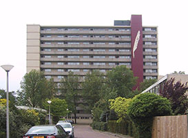 Socratesflat 13 woonlagen van 6 eenheden (incl. 2 hoek woningen) op een onderbouw met toegangen tot de centrale ruimten en trappenhuizen. Opvallende met 'veer' beschilderde brandtrapkoker. Hoofdingang in de rechter zijgevel. In de voor- en achtergevel doorlopende balkons met 'gewassen beton' borstwering. In de zijgevel franse balkons voor de grote vensters en inpandige balkons voor de hoekappartementen. De achterzijde is gelegen aan een ruim gazon met aan de randen een beplanting van bomen, aan de dijk van de Pettelaarse Vaartgraaf. In de bouwaanvraag van 1969 staat een bedrag van fl. 3.000.000,= vermeld.
