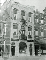 Exterieur kapsalon en winkel in tabakswaren Nico Martens. Voorgevel in art-nouveau (Jugendstil), huisnummer 7. Rechts daarvan gedeelte voorgevel hotel-café-restaurant Du Commerce. Panden zijn verwoest tijdens de gevechten bij de bevrijding van de stad oktober 1944.