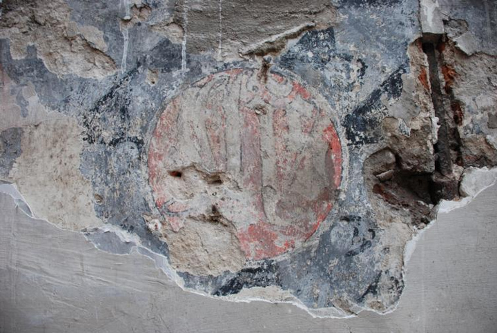 • Middeleeuwse muurschildering ontdekt op zijgevel gesloopd pand Mexx. • Gemeente wil schildering voor nageslacht bewaren. • Kou is voorlopig spelbreker.