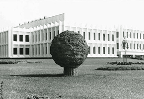 waarvan de lucht aan de bovenzijde van de vide wordt ingeblazen.Tuin:In het ontwerp voor de tuin werd gestreefd om een totaalontwerp van tuin en gebouw te maken, waar in verschillende sferen de producten van de Nederlandse cementindustrie waren verwerkt. De tuin moest deels stenig en deels groen worden, maar is maar ten dele volgens het ontwerp uitgevoerd. De betonnen bestrating en fontein zijn ontworpen door de beeldhouwer/omgevingskunstenaar Joop Beljon. De twee betonnen kunstwerken in de tuin, gemaakt door Beljon en Jaap van der Meij, zijn later toegevoegd en behoren niet tot het oorspronkelijke ontwerp. | 3 |