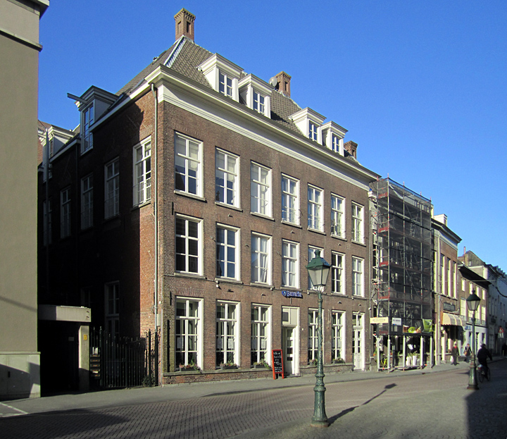 De FRATERS VAN TILBURG vestigden zich op 7 juli 1862 (de feestdag van de Zoete Moeder) voor het eerst in ’s-Hertogenbosch, waar toen nog geen katholieke jongensschool bestond. De fraters kregen het huis Den Missaal in de Torenstraat geschonken door mejuffrouw Petronella Coppens, op voorwaarde dat ze er mocht blijven wonen. Ze had er vanaf 1837 een schooltje gehad voor 23 arme kinderen. Aanvankelijk brachten de fraters de lagere jongensschool onder in een van de spreekkamers. Toen de congregatie in het bezit kwam van belendende huizen verbouwde frater Antonius het geheel in 1867 en in 1875. In 1870 opende men een school in de Sint Jacobparochie, in 1872 gevolgd door een tweede in de Verwersstraat. Aangezien het huis in de Torenstraat te klein werd openden de fraters in 1928 een nieuw huis in de Papenhulst. De oude panden kregen een woon- en horecafunctie. Daarbij is het inwendige met fragmenten van een overwelfde kapel geheel uitgebroken. Het voormalige fraterhuis is een kloek neoclassicistisch gebouw van drie bouwlagen onder een afgeplat pannen schilddak. De bakstenen gevel heeft een geprofileerde daklijst met een gepleisterd fries. Op de begane grond achtruits schuiframen en op de etages zesruits schuiframen. De aangrenzende panden vertoonden dezelfde opbouw. Een intussen verdwenen eenlaags gebouw aan de linkerzijde had een trapgevel en spitsboogramen. Het was met een poortje verbonden met het hoofdgebouw. | 520 |
