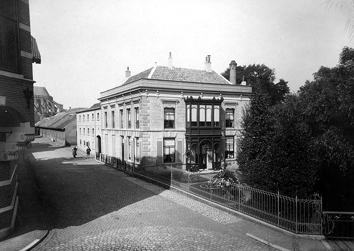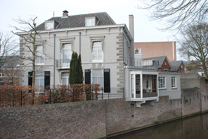 straat een nieuwe brouwerij. In dat pand is nu Theater Bis gevestigd. De ster en het jaartal herinneren aan de brouwerij. Maar wie zou dat nog weten?" vraagt Jan Kwantes zich af. In 1904 is de brouwerij naast Kwantes afgebroken. Er kwamen drie huizen voor in de plaats, de huidige nummers 2, 4 en 6. "Een paar jaar geleden is in de tuin van de buren nog een bierkelder ontdekt van enkele meters diep." De bierbrouwer J. Boelen woonde zelf in het pand van Jan en Toos Kwantes, in elk geval van 1865 tot 1890 maar wellicht langer.RattenVan 1908 tot 1919 woonde boekdrukker en ondernemer W. Lutkie in het pand. Deze vroeg bij de gemeente een bouwvergunning aan 'om buiten langs den diezemuur een uitstekend scherm aan te brengen teneinde te beletten dat de ratten langs den muur opkruipen en aldus tuin en woning bereiken'. Jan Kwantes vond de bijbehorende tekening terug in het stadsarchief. De volgende bewoner was H. Cappetti, directeur van de Amsterdamsche Bank. In 1931 betrok huisarts Th. Kortbeek het pand. Deze vestigde er ook zijn praktijk. Vanaf 1941 woonde dokter P. Otjens in het huis. "In dit huis is constant getimmerd, gewoond, getimmerd, gewoond en weer getimmerd. Dokter Otjens heeft in 1955 het huis zijn huidige vorm gegeven, met de grote woonkamer langs de zuidgevel aan de Binnendieze, en de erker boven het water, met een prachtig uitzicht op de Casinotuin. Hij heeft het huis, zeker naar de maatstaven van de jaren 1950, prachtig gemoderniseerd. Binnen hebben wij weinig veranderd. Wat wij onder leiding van onze architect en vriend Hans van de Laar hebben geprobeerd, is er weer een eenheid van te maken, in een wat strakkere stijl. Alle muren en plafonds zijn opnieuw gestuct. De kinder-binten uit 1955 in de woonkamer en de hal hebben we weggewerkt achter een gestuct plafond. We vonden die te veel '011y B. Bommelstijl'," vertelt Toos Kwantes-Zwinkels.MuurdiktesAan de niveauverschillen in huis, de verschillende muurdiktes en behouden gebleven lijstwerk is de lange geschiedenis van het huis beleefbaar. Beneden links is de werkruimte van Toos Kwantes-Zwinkels, die evenals Otjens arts is. Vroeger waren daar spreekkamer, onderzoekskamer en apotheek van huisarts Otjens, die zelfs een klein vertrek had laten maken waar baby's verschoond konden worden. De werkruimte is bij de laatste opknapbeurt geschikt gemaakt om zelfstandig te bewonen.Het grote vierkante trapportaal heeft een `kloosterachtige' sfeer, vinden Jan en Toos Kwantes. Jan: "Sereen door de hoogte en het koude licht dat van de oostzijde binnenvalt." Toos: "En door het avondlicht dat van de andere kant komt. Het is hier altijd mooi, 's ochtends en 's avonds." De smeedijzeren balustrade van de trap in het trappenhuis dateert van 1955. "Wij hadden bij onze verbouwing dezelfde aannemer als Otjens in 1955, het bedrijf De Bonth van Hulten. Aannemer Caspar de Bonth zag het smeedwerk en zei: dat heeft mijn ome Harrie nog gemaakt. Hij maakte die dingen", lacht Jan Kwantes. Diens werkkamer heeft een balkon langs de Dieze, dat ook met een smeedijzeren balustrade is beveiligd. Met spijlen met open mandjes. "Die zijn een stuk ouder, en bij een vorige verbouwing, denk ik, ergens anders vandaan gehaald. Maar met die mooie spijltjes met korfjes hebben ze gesmokkeld. Eerst zitten ze één op twee, dan één op drie, en aan het eind houdt het helemaal op. Dit spul is dan ook vreselijk duur. Dit moet kapitalen hebben gekost." | 265 |