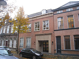 Context(Bouw)historie:Rond 1885 werd begonnen met de bouw van huizen aan de Van Tuldenstraat, die, genoemd naar de bekende Bossche schilder, in 1881 zijn naam kreeg. De straat werd, net als de Jan Heinsstraat, aangelegd op de voormalige “Esplanade” en maakt deel uit van één van de “stadsuitbreidingen”, die aan het einde van de 19de eeuw binnen de contouren van de oude vesting werden gerealiseerd. De straat huisvestte voornamelijk een gemêleerd gezelschap van handelaren, ambtenaren, administrateurs, kleine zelfstandigen uit de vanaf het einde van de 19de eeuw sterk groeiende middenstandsklasse.Het perceel van het huidige nr.13 werd in of kort voor 1885 aangekocht door C.J.E. Hamilton en bebouwd met een herenhuis, waar in het begin van de 20ste eeuw F.L. Welsch woonde en later J.L.A. Festen, hoofdcommissaris van de Provinciale Griffie. Kort na de Tweede Wereldoorlog werd het in het pand een filiaal van de Boerenleenbank, gevestigd. Dit gebeurde dus ten huize van heer Festen, die daarmee de eerste kassier was van de bank. De coöperatieve boerenleenbank was opgericht door Janus de Bekker uit Empel en Nardus van Cromvoirt uit Bokhoven ten behoeve van de financiering van de Bossche Melkinrichting. In 1953 werd nog een serre aan het oude pand toegevoegd, maar in 1955 besloot men tot een volledige nieuwbouw, naar ontwerp van de Bossche architect H.M. van Vrede. Deze voorzag het gebouw van een sober-voorname voorgevel in traditionalistische stijl, verwant aan de Delftse School. Op 18 november 1966 werd het bankgebouw door brand beschadigd, waarna herstelwerkzaamheden plaatsvonden in 1967, wederom naar ontwerp van Van Vrede, Later is een nieuwe Boerenleenbank gerealiseerd aan het Burg. Loeffplein. In 2006 zijn de bestaande kantoorruimte veranderd, wijzigde men de achtergevel en is een interne verbouwing van de bovenwoningen uitgevoerd. Een woning in het pand op nr.11 is thans bereikbaar via het portiek van nr. 13. Ligging:Het pand ligt aan de zuidoostelijke zijde van de Van Tuldenstraat, binnen de aaneengesloten zuidoostelijke gevelwand van deze straat in het noordelijke deel van de Bossche binnenstad. Dit wijkje werd aangelegd op de “Esplanade” of het “Plein”, de onbebouwde ruimte ten zuiden van de Citadel, die eind 19de eeuw werd herontwikkeld.BeschrijvingAlgemeen (hoofdvorm, kap):Het pand heeft in hoofdzaak een rechthoekige plattegrond, een kelderverdieping, twee volledige bouwlagen en een in de kap opgenomen zolderverdieping. Het dak, een schilddak, heeft de nokrichting evenwijdig aan de voorgevel en is gedekt met gesmoorde romaanse pannen. Aan de voorzijde is er een eenvoudige houten bakgoot op klossen. Het voorschild draagt twee houten dakkapellen met zadeldakjes, zinken wangen en vernieuwde enkelruits ramen.Aan de achterzijde sluit een grote aanbouw van één bouwlaag met een plat dak aan. | 2 |