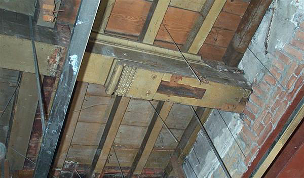 Tijdens het vernieuwen van het systeemplafond op de begane grond in 2006 zijn de verdiepingsbalklagen onderzocht. Uit het rapport blijkt het volgende: De verdiepingsbalklaag van het pand bestaat uit een samengestelde balklaag (XVB). Het voorhuis is drie balkvakken diep, het achterhuis twee. In het eerste, vierde en vijfde balkvak is een onderslagbalk aangebracht. Uit de pengaten (van voormalige muurstijl en korbeel) in de sleutelstukken onder de moerbalken valt af te leiden dat het pand een houtskelet heeft gehad. Van deze sleutelstukken (XVB) is het eerste rechts nog helemaal gaaf. De onderslagbalk halverwege het eerste balkvak is aan beide zijden voorzien van geprofileerde sleutelstukken (XVII). De kinderbalken in het derde balkvak zijn vervangen door een enkelvoudige balklaag (XX). Ter plaatse van de voormalige brandmuur is een hergebruikte balk (XIX) met kwartrond profiel aangebracht. De balklaag in het achterhuis heeft in beide balkvakken een onderslagbalk en ter plaatse van de achtergevel een strijkbalk. Het metselwerk van de zijmuren is waarschijnlijk even oud als de zojuist beschreven samengestelde balklaag (XVB). De zijmuur met het rechter buurpand was gemeenschappelijk (deze is in de huidige situatie vrijwel geheel verwijderd). Over de linker zijmuur is geen documentatie voorhanden. Waarschijnlijk is deze ook gemeenschappelijk met het buurpand.