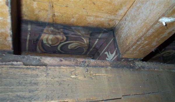 In het achterhuis zijn boven de onderslagbalken, op de kinderbalken en de vloerdelen, fragmenten van een 17de-eeuwse rankenschildering aangetroffen. Deze schildering loopt door over de gehele breedte van het achterhuis. Verder is er op de balklaag ter plaatse van de voormalige gang in het voorhuis (deze liep van voor- tot achtergevel) een biezenschildering aangetroffen. In zowel het voor- als achterhuis zijn diverse oude behangfragmenten gevonden.