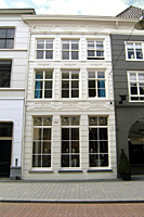 hem dit huis ten huwelijk bracht. Hun zoon was Johan van Rijsingen, die dit huis erfde en bij zijne vrouw Elisabeth Hermansdochter van Sambeeck deze kinderen verwekte: a. Herman 4), b. Johan en c, Agnes van Rijsingen, welke laatste de echtgenoote was van Jan Signoriouw: zij droegen 10 Maart 1638 (Reg. n°. 381 f. 163) aan hunne moeder dit huis op, dat in 1609 reeds verhuurd was aan Guilliam de Buissonet Lombarde; of deze daarin zijne bank van leening hield dan wel in het Lombardstraatje is mij niet kunnen blijken.