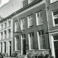 uithangt, Westwaarts, ex alio, aan Jan, sartor, (schoenmaker), zoon van Willem Jacobszn van Cuyck. Zijne afstammelingen zijnde: Dierick, zoon van wijlen Jacob Janszn van Haeren en Mariken, de dochter van genoemden Jan Willemszn van Cuyck, voor 1/4; Marcelis Walravens, als man van Mayken, dochter van Jacob en Mariken voornoemd, voor 1/4; de voogden over de drie onmondige kinderen van wijlen Jan, zoon van Jacob en Mariken voornoemd, voor 1/4; en de voogden over Jacomina, onmondige dochter van Willem, den zoon van Jacob en Mariken voornoemd, ook voor 1/4, verkochten 13 Januari 1618 (Reg. n°. 343 f. 131 vso) dit huis, dat nu omschreven werd als twee woningen onder een dak met erf en tuin, staande tusschen het huis, dat eertijds was der kinderen van wijlen Adriaan de Ruyter en nu is van Aelken, dochter van Marten Morre, ex uno en dat, hetwelk eertijds was van Jan Mathijszn en nu is van den schrijnwerker Henrick Rutten, (de Moor) ex alio, zijnde eene dier woningen genaamd het Merenblat en de andere in Swanenborch, aan Jan Aertszn van Boxtel, kramer. Diens zoon mr. Henrick van Boxtel, pastoor te den Dungen en Aert Henrickszn Cierneels als weduwnaar en erfgenaam van Mechteld, dochter van Henrick Eelkens en weduwe van genoemden Jan Aertszn van Boxtel, verkochten 23 Juli 1635 (Reg. n°. 337 f. 229) dat huis aan mr. Peter van Haeren, notaris en procureur te den Bosch; deze laatste had van zijne vrouw Jenneken, dochter van Nicolaes Hixpoors, de navolgende kinderen: Johan, procureur te den Bosch; Maria; Anna echtgenoote van Cornelis van de Laer; Nicolaes en Adriana; zij verkochten 29 Januari 1663 (Reg. n°. 443 f. 168) dat huis, hetwelk nu gezegd werd te zijn: twee huysen onder een dack met plaetse, coockhuys, somerhuys ende hoff, genoemt het Merenblat, staande tusschen het huis van Jan de Hont (kleermaker) ex uno en dat van Laureyns van Kessel, oud-secretaris van den Bosch, ex alio, aan mr. Cornelis Coolen 1)