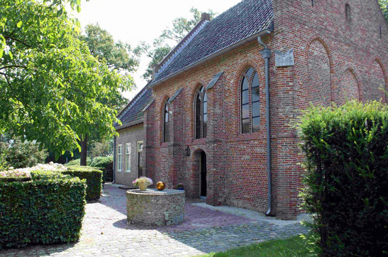 De kapel, gewijd aan de beschermheilige tegen keel- en veeziekten, was aanvankelijk vooral bedevaartsoord, maar vanaf een uitbreiding in 1535 ook buurtkerkje. Van 1677 tot 1888 was de kapel schoolgebouw. Nu wordt het monument bewoond door Hans en Arianne Brouwers. Al meer dan 350 jaar is de kapel niet meer als kerkgebouw in gebruik "Mijn vader heeft er gewoond, m'n opa én m'n overgrootvader." Hans Brouwers is trots op het familiebezit. Maar het is bijna een godswonder dat de woning na al die jaren nog steeds duidelijk herkenbaar is als kapel. Hans (1966) en zijn echtgenote Arianne (1967) Brouwers hebben hun woonkamer en kantoorruimte gemaakt in de eigenlijke kapel. Het moderne keuken- en slaapgedeelte bevindt zich op de plek van het vermoedelijk vijftiende-eeuwse priesterkoor aan de oostzijde, dat in 1838 is vervangen door een nieuw schoollokaal. Stap voor stap hebben zij de tot 1996 aan anderen verhuurde woning en het erf eromheen zorgvuldig opgeknapt. "Er is een paar jaar overheen gegaan. Zoiets moet je niet in enkele maanden willen doen", zegt Hans. "Het was een mooie ruimte, maar je kon er niks mee. Het was heel doods, alles grijs", vertelt Arianne over het begin. Hans zegt: "De gevel stond 90 centimeter uit het lood. De funderingen hebben we laten opkrikken, de steunberen en gothische ramen opnieuw laten inmetselen." De familie Brouwers liet zich adviseren door architect G. Valk, die ook in 1975 al het pand restaureerde in opdracht van Hans' vader Martien Brouwers. Arianne: "Eerst wisten we niet of we beneden zouden gaan wonen of boven." De architect adviseerde in de twee toegangsdeuren grote vierkante ramen uit te zagen. "Die kun je vanaf de weg nauwelijks zien, maar we kunnen er wel door naar buiten kijken. Dat is genoeg. Via de zes hoge ramen komt voldoende licht binnen. De lichtinval in de kapel heeft Hans verder heel slim bedacht." De ramen voorzien zowel de begane grond als de door Hans bedachte tussenverdieping van licht. De tussenetage wijkt bij elk raam met een door een balustrade afgeschermd boogje van de zijmuur. Een dertien meter lange grenen balustrade welft zich langs de verdieping, en is een kunststukje op zichzelf. Hans: "Die is in de timmerfabriek in elkaar gelijmd - honderden lijmtangen zaten erin - en in één geheel naar binnen gebracht." Hans heeft boven zijn kantoortje, dat vanuit de woonkamer iets weg heeft van een balkon voor het kerkkoor. BisschopsmijterHans en Arianne Brouwers hebben een ontwerpbureau voor landschap en tuin. De 5.000 vierkante meter grond om de kapel is geen kloostertuin of kerkhof, maar ze hebben geprobeerd ook hier in stijl te blijven. De gevel van de schuur doet in vorm denken aan een bisschopsmijter. Het metselwerk is, net als de kapel, opgebouwd uit afwisselend horizontale lagen van strekken en koppen. "De beplanting is vooral inheems, met beuk, wingerd, buxus, kastanje en hortensia."Kruisbeeld in de keukenHet beeld uit de kapel van H. Cunera wordt nog bewaard in de Abdij van Berne. In de woning van Arianne en Hans is niets meer uit de oorspronkelijke kapel aanwezig.Maar een tante zat in een klooster in het Limburgse Meerssen. Daar komen de twee mooie kerkbanken aan de eettafel vandaan. Arianne: "Over de vloer hebben we lang nagedacht. Uiteindelijk vonden we in de kapel van een verzorgingshuis in Eindhoven de zwarte Dolomiet-steen, die we nu zelf ook hebben." Er hangt een kruisbeeld in de keuken, en er staat er een op de kast in de woonkamer. Arianne en Hans Brouwers zijn van huis uit katholiek maar de zondagse gang naar een `echte' kerk is gesleten. Aan de sfeer van hun eigen kapel wilden zij echter geen afbreuk doen. Arianne: "Die nieuwe en heel oude stenen, dat heeft iets. Ook die muur die nog steeds scheef staat." Hans: "Het is een stukje van je familie. Dat is mooi. En ik kan hier met m'n werk uit de voeten. Ik kan er m'n creativiteit in kwijt." | 43 |
