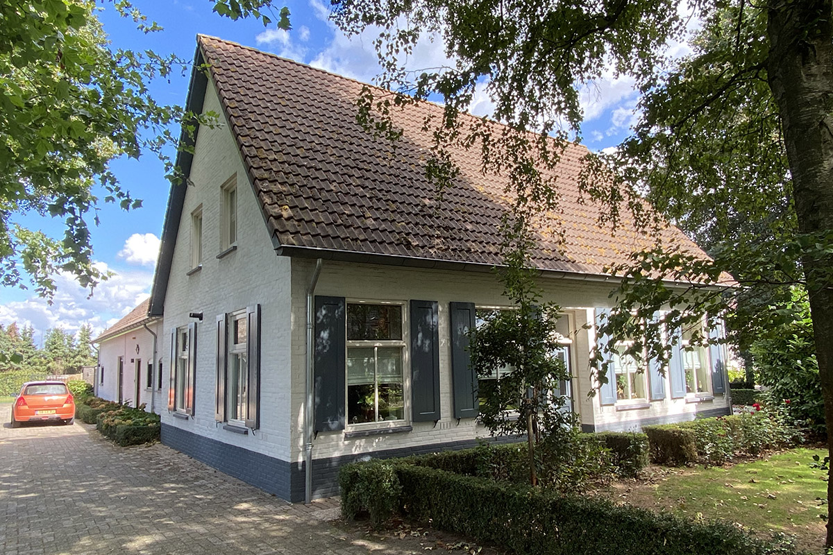 Redengevende omschrijvingTot carport verbouwde 19de-eeuwse boerenschuur van één bouwlaag met een zadeldak met wolfseinden, gelegen op een groot perceel. De boerenschuur/carport heeft een oudere 17de-eeuwse kern van een eiken ankerbalkgebintconstructie met een driebeukige opzet, oorspronkelijk behorende tot een boerderij.De huidige carport is gelegen op een groot perceel en met de zuidelijke kopse gevel georiënteerd op de Vinkelsestraat. Het éénlaags gebouwtje heeft een rechthoekige plattegrond met driebeukige opzet en een onderverdeling in een carport en opslagruimte. Het gebouwtje heeft een zadeldak met wolfseinden, gedekt met golfplaten. Ter plaatse van de inrijopeningen van de carport is de oostelijke zijbeuk, van de oorspronkelijke driebeukige opzet, verwijderd. De gevels zijn in verschillende fasen - in de 19de- en 20ste-eeuw - tot stand gekomen. De noordelijke kopse gevel is opgetrokken in 19de-eeuwse baksteen in kruisverband toen de boerderij werd verbouwd tot boerenschuur. De zuidelijke kopse gevel is in de 20ste eeuw gedeeltelijk hermetselt met hergebruikte 19de-eeuwse steen. Een deel van deze kopse gevel is opgetrokken in kalkzandsteen. In de gevel bevindt zich een gietijzeren stalraam met aan weerszijde een drieruits betonnen stalraam. In de noordelijke kopse gevel bevindt zich een staldeur met aan weerszijde een gietijzeren stalraam. Het 19de-eeuwse metselwerk gaat gedeeltelijk schuil achter een moderne gevelbeplanking. De westelijke langsgevel is opgetrokken in kalkzandsteen. In de oostelijke langsgevel bevinden zich de moderne carportopeningen en een dubbele deur die toegang verleent tot een opslagruimte. De gevel is met een moderne beplanking afgewerkt. De opslagruimte is van de carport afgescheiden door middel van een kalzandsteen muur. De opslagruimte en de carport hebben moderne afsmeervloeren. De 17de-eeuwse eiken gebintconstructie is opgebouwd uit drie ankerbalkgebinten met korbelen en wormplaten. Het vierde - meest noordelijke - ankerbalkgebint is uitgevoerd in grenen, ter vervanging van het eiken origineel. De staanders van de gebinten zijn op moderne gemetselde poeren geplaatst. De ankerbalken zijn in de staanders gepend en getoogd. De doorstekende pen is met twee wiggen vastgezet. Zowel de korbelen als de windschoren zijn onder en boven gepend en getoogd. De wormplaten zijn in de staanders gepend en getoogd. In de staanders bevinden zich pen- en toognagelgaten voor (verdwenen) regelwerk in de richting van de zijbeuken. Zowel op de eiken ankerbalkgebinten, waaronder de staanders, korbelen en ankerbalken als op de windschoren en wormplaten zijn gehakte telmerken aangebracht. Op het eerste - meest zuidelijke - gebint wordt een onderscheid gemaakt tussen links en rechts door een oplopende nummering in de vorm van een gehakt eitje: () (rechts) en ()() (links). Spant twee en drie zijn oplopend genummerd: één en twee. Er wordt een onderscheid gemaakt tussen links en rechts door middel van een gehakt streepje: I (rechts) en een gehakt eitje: () (links). In het meest zuidelijke spant zijn pen- en toognagelgaten herkenbaar van een verdwenen vakwerkwand die de overgang markeerde tussen het woon- en stalgedeelte van de 17de-eeuwse boerderij. De vakwerkwand had een vulling van leem met gevlochten fitsels, nog herkenbaar aan de fitselgaten in de ankerbalk. Tevens is traceerbaar waar zich een deur heeft bevonden in de vakwerkwand, herkenbaar aan het ontbreken van fitselgaten. De deur is later verplaatst wat herkenbaar is aan de ingehakte secundaire deurssponning in de ankerbalk. Bij de wijziging tot boerenschuur in de 19de eeuw is de wand verwijderd en zijn de eiken korbelen en windschoren op één na, vervangen voor grenen exemplaren. ln het oorspronkelijke 17de-eeuwse stalgedeelte bevond zich een dwarsdeel tussen het tweede en derde gebint. Deze is nog herkenbaar aan de hoger aangebrachte windschoren in verband met de inrijhoogte van paard en wagen. De overige eiken windschoren worden gekenmerkt door de naar verhouding grote lengte en kromme vorm. Eén windschoor, ter plaatse van de carportopening, is ingekort vanwege de inrijhoogte. | 1 |